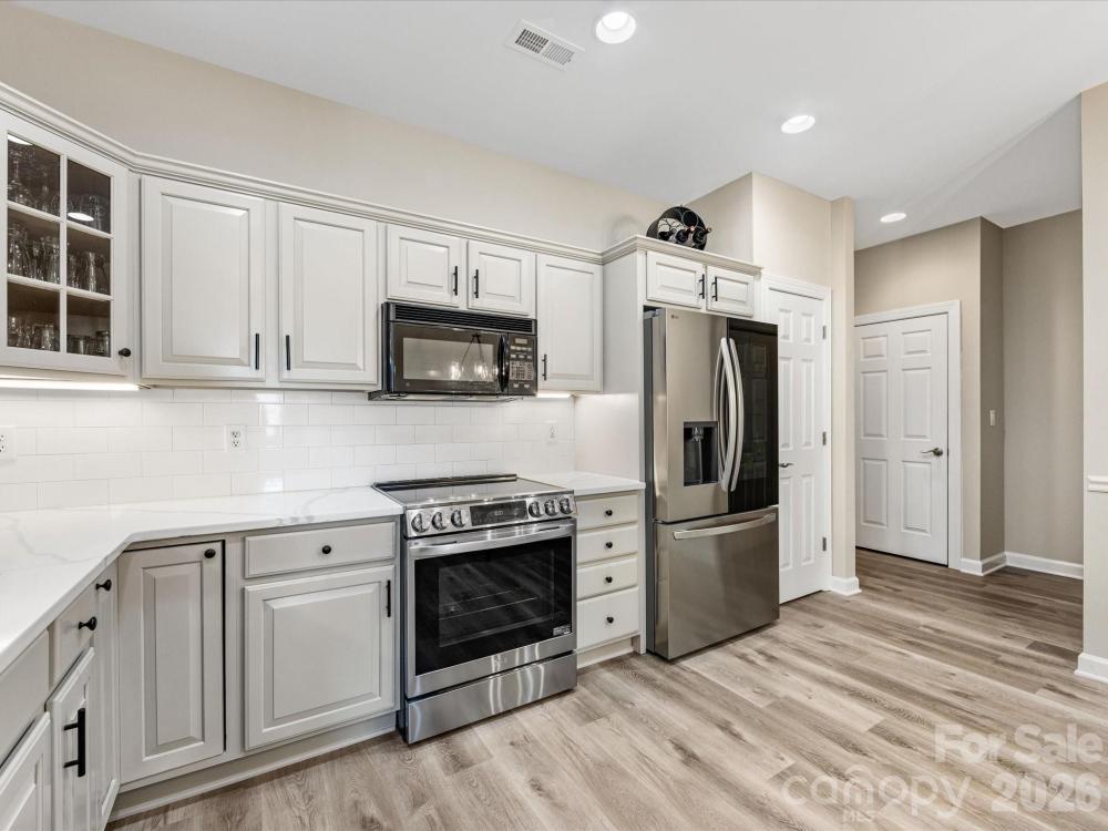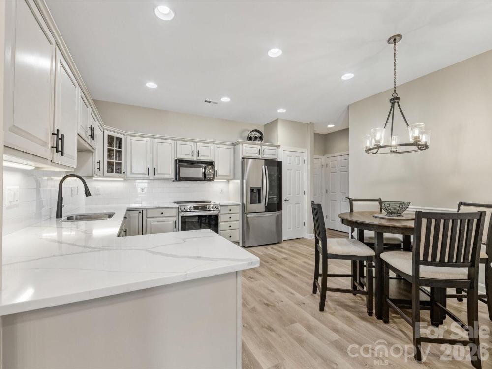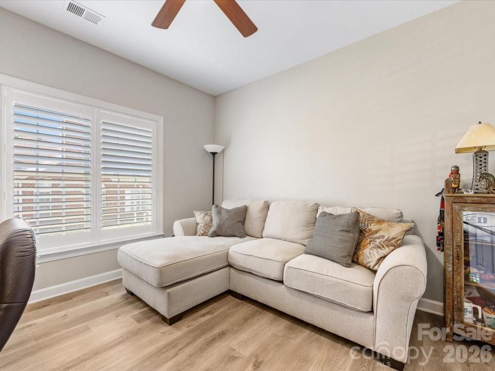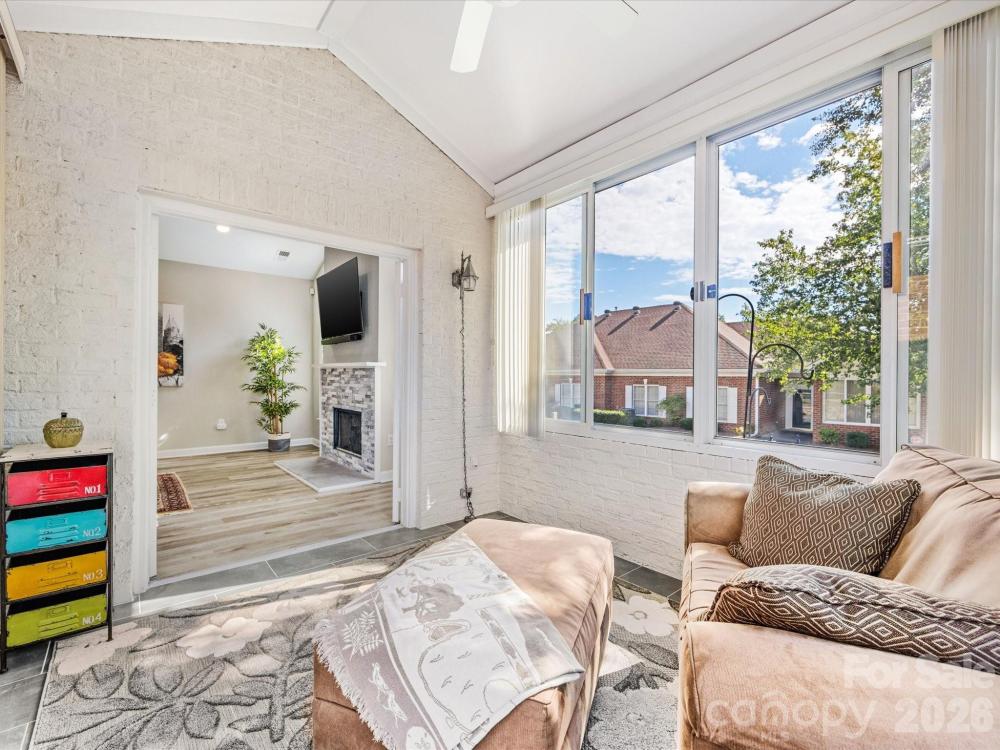 Renovated from top to bottom, including brand new HVAC! This beautifully updated 2 bedroom + office/3rd bedroom, one-level home in highly desirable Windsor Oaks offers the perfect blend of style, comfort, and low-maintenance living. Set on a quiet corner lot, this home features an open floor plan with vaulted ceilings, a cozy gas fireplace with a brand-new surround, and expansive windows that bathe the living area with natural light. The newly updated sunroom, featuring new tile flooring, provides a bright and inviting space for morning coffee, reading, or year-round relaxation. The kitchen has been completely refreshed with sleek quartz countertops, updated cabinetry and hardware, stainless steel appliances, and ample storage. The primary suite is a true retreat, boasting a tray ceiling, a large walk-in closet, and a stunningly renovated ensuite bath with modern finishes. The second bedroom is situated across from an updated guest bath, while a flex/office room provides versatile options for work or guests. Other recent upgrades include new flooring throughout, designer lighting, and custom "plantation" shutters —making this home feel brand new. Enjoy the ease of Windsor Oaks living, where HOA dues cover exterior maintenance, landscaping, water/sewer, and trash removal. Community amenities include a clubhouse, pool, and fitness center—all just minutes from Stonecrest, Blakeney, Waverly, and the Bowl at Ballantyne, with easy access to I-485 and top-rated schools. Washer, dryer, and refrigerator remain, making this beautiful home truly move-in ready. If you’re looking for privacy, convenience, and modern style in one of South Charlotte’s most sought-after communities—this is it. Welcome home!