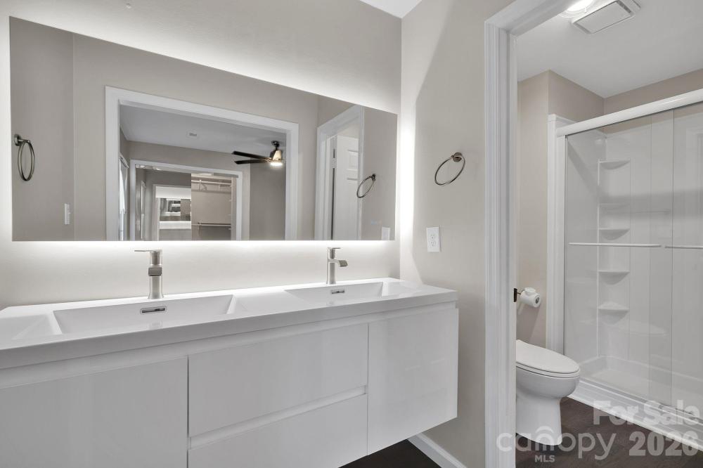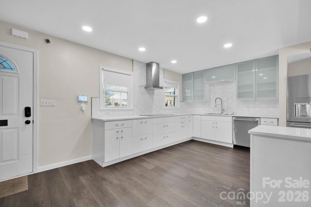 Beautifully renovated full brick front exterior townhouse with fully permitted upgrades completed in 2023–2024. The main living level was reconfigured to create a spacious open-plan kitchen and living area, including relocation of the powder room to maximize flow and openness. The custom kitchen features imported Italian marble tile with Mother-of-Pearl accents, European-style soft-close cabinetry with frosted glass upper cabinets, and Calacatta Gold granite countertops offering nearly 32 square feet of prep and bar space. Premium GE Café appliances include a ceramic cooktop, double oven (with combination microwave), and a French-style five-door refrigerator with ceramic LED backlit interior wall. Luxury waterproof wide-plank vinyl flooring runs throughout the home. Electrical upgrades include replacement of the exterior panel and water heater in 2018, interior panel replacement in 2023, and extensive electrical updates completed in 2023–2024. Much of the plumbing was also replaced during renovations. Upstairs, the primary bedroom closet was expanded to create a walk-in layout. Both the en-suite and family bathrooms were fully renovated with modern floating vanities, and the en-suite features a new LED lighted mirror with touchscreen controls. The basement powder room was enlarged to include a fully tiled 6’ x 6’ walk-in shower with dual rain shower heads. The basement also offers a new electric fireplace insert and a Murphy bed, allowing the space to function as either a guest room or additional living area. Outside, the enclosed private patio includes a wood-burning chimney fireplace. All certified renovation and structural modification plans are available for inspection.