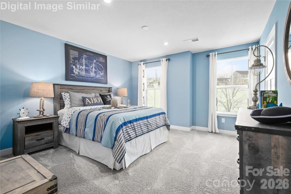 End unit! Why rent when you can own a home that truly feels like it was designed just for you? Welcome to a brand-new community nestled in a serene, tree-lined neighborhood where glowing streetlights and walkable sidewalks create a warm, inviting atmosphere. This stunning two-story home offers 3 spacious bedrooms, 2.5 bathrooms, and a 2-car garage, blending luxury and comfort in every corner. As an added comfort feature, this home includes a 2-foot extension, offering extra living space. Step into the heart of the home—a chef’s dream with a country kitchen featuring a large island, quartz countertops, wall tile backsplash, stainless-steel appliances, cabinet enhancement package and ample cabinetry for all your culinary needs. The open-concept layout flows seamlessly into a generous great room, perfect for entertaining guests or enjoying cozy family nights and a dining area with Luxury Vinyl Plan. Upstairs, retreat to your luxurious owner’s suit filled with natural light. This spacious king-sized bedroom features two walk-in closets and a private, spa-inspired bath with dual vanities and a relaxing shower. Choose from optional upgrades with a framed glass door or a cozy garden tub paired with a walk-in shower and private water closet—designed to suit your lifestyle. Two additional bedrooms offer comfort and flexibility for family, guests, or a home office. The convenient second-floor laundry adds everyday ease. Enjoy low-maintenance living with HOA-covered lawn care, garbage pickup, and exterior maintenance/insurance. Located just minutes from grocery stores and major highways, this home offers the perfect blend of tranquility and accessibility. Your dream home awaits. Primary residence. To be built. Photos for illustrative purposes.