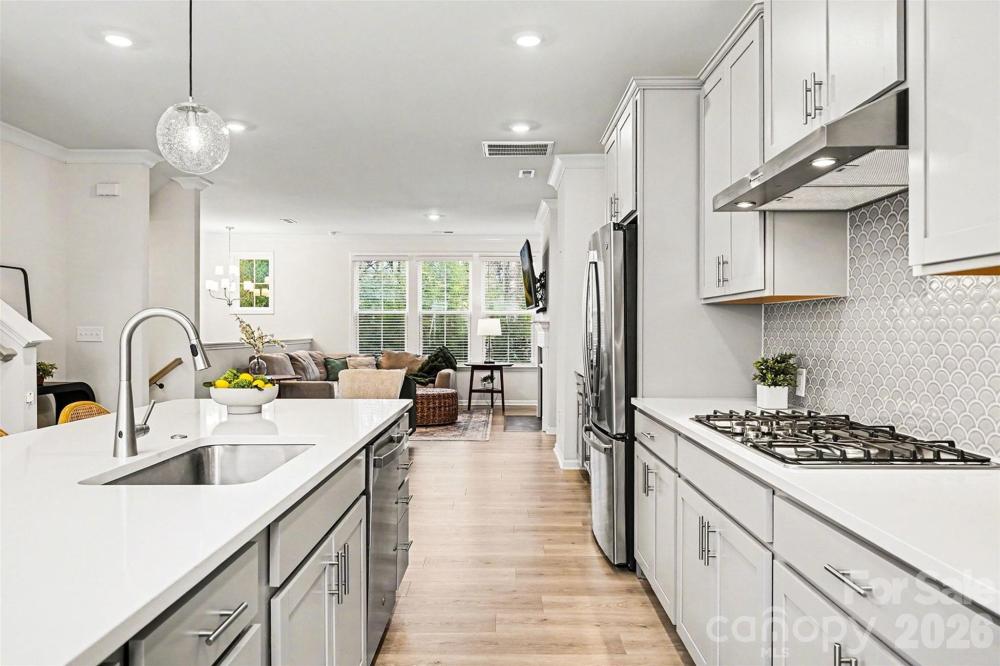 Buyers, you can receive up to 1% lender credit if you work with preferred lender. Built in 2024, this like-new 3-bedroom, 3.5-bath end-unit townhome offers abundant natural light with oversized windows and tall ceilings throughout. The entry level includes a two-car garage and flexible space with a full bath, ideal for a guest suite, office, or additional living area; plus a charming front patio that faces natural area to provide privacy. The main level features an open-concept design with a gourmet kitchen, oversized island, rare walk-in pantry, gas fireplace, half bath, and a private balcony for easy indoor-outdoor living. Upstairs, the spacious owner’s suite includes a large walk-in closet, along with two additional bedrooms and a convenient laundry room. Community amenities include a dog park and dog stations—making this bright, thoughtfully designed home truly move-in ready.