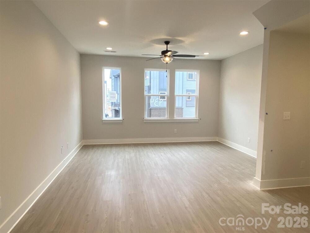 Craving close proximity to Uptown Charlotte & Camp North End? This townhome offers that & more. 4th floor w/ Bonus bedroom w/ powder & spacious rooftop terrace. 1st floor has a flex rm w/powder & 1-car garage plus driveway. Small deck off the kitchen has seasonal city skyline views. Kitchen features 42" white perimeter cabs w/ nautical blue cabs at the island, matte black hardware, LED under-cabinet lights, trash pullout, large undermount SS sink, quartz counters, & GE SS app w/ gas range. 3rd floor hosts both bedrooms & laundry. Guest bath has quartz counters & white cabinets. Premier Bath includes a nautical blue cabs, matte black hardware, quartz counters, & tiled shower with semi-frameless glass & shampoo niche. LVP flooring is throughout 1st & 2nd floors, plus 3rd floor landing, with oak treads on all stairs. Tile in full & half baths (excluding 2nd floor powder) & laundry. 3 ceiling fans; 9' ceilings throughout. Walking distance to bars, restaurants, events, and more!