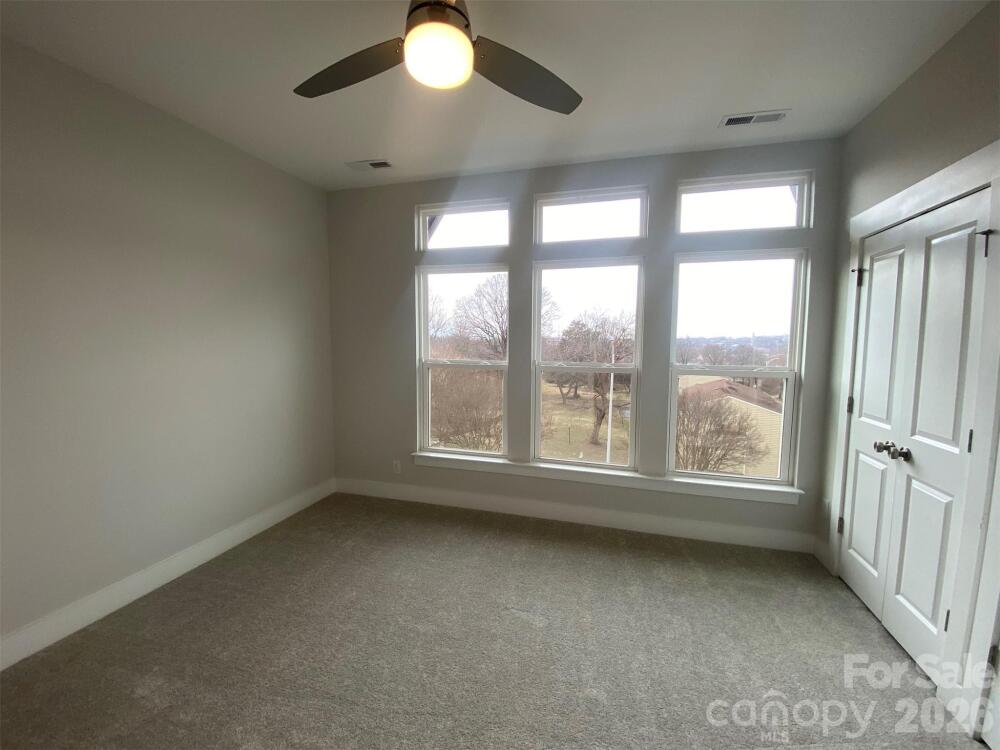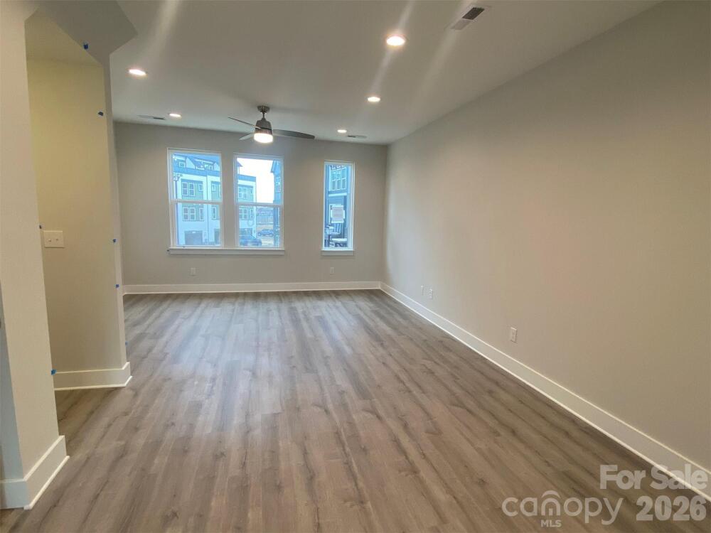 4-story townhome with a great location - walk to Camp North End, and minutes to the heart of Uptown! Highlights include 9' ceilings, 1st floor flex rm w/ powder, 1-car garage plus driveway, on-trend lighting & design features, and a versatile 4th floor with bonus bedroom & spacious rooftop terrace w/ TREX decking. Great open layout on the 2nd floor w/ Kitchen deck with seasonal city skyline view. Kitchen features grey painted 42" cabs w/ satin nickel hardware, pantry cabinet, trash pullout, LED under-cabinet lights, quartz counters, large SS undermount sink, & GE SS app w/ gas range. 3rd floor hosts both bedrooms & laundry closet. Premier Suite has an en-suite bath with tiled shower & semi-frameless enclosure. Guest hall bath is convenient to the Rec room; both baths have grey cabinets, quartz counters, & tiled floors. LVP flooring is throughout the 1st & 2nd floors, plus 3rd floor hall. Oak treads are on all stairs. Tile in laundry & 1st floor powder. 4 52" ceiling fans.