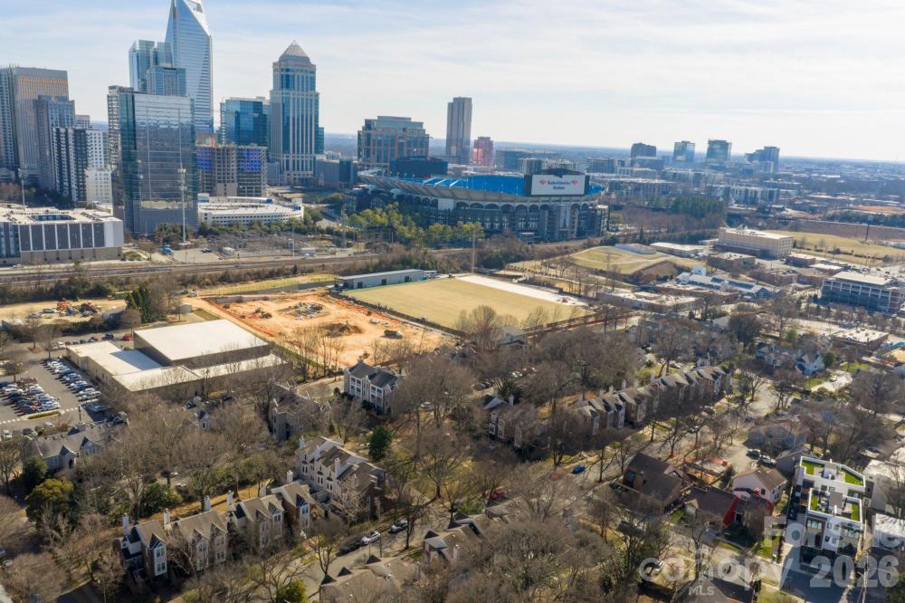 Welcome to this charming townhome nestled in one of Charlotte’s most desirable intown locations. Perfectly positioned just minutes from Truist Field and Bank of America Stadium, this home offers the best of city living with a peaceful neighborhood feel. Step inside to an open-concept main level featuring brand-new hardwood floors, a spacious living area, and a wood-burning fireplace that adds warmth and character. The layout flows effortlessly into the dining and kitchen spaces, making it ideal for both everyday living and entertaining. Upstairs, you’ll find a large primary bedroom with generous space to unwind, along with ample secondary bedrooms that offer flexibility for guests, a home office, or additional living needs. Out back, enjoy your private patio, perfect for morning coffee or evening relaxation. The surrounding neighborhood is known for its mature trees and sidewalk-lined streets that gently meander to the scenic Irwin Creek Greenway—ideal for walking, running, or biking. Just around the corner, Frazier Park, local restaurants, and shopping add to the unbeatable lifestyle this location provides. This townhome combines space, style, and an exceptional location—a rare opportunity to enjoy intown Charlotte living at its best.
