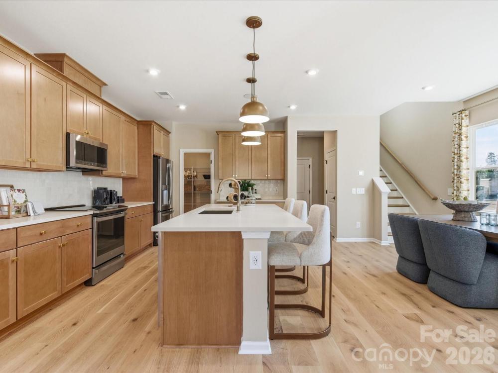 Light-filled living and thoughtful design define this end-unit home at Ellis Townes. Located at 8402 Discovery Lane with an anticipated move-in of September 2026, this residence pairs everyday comfort with elevated style. A fenced front yard creates a welcoming first impression and offers an outdoor retreat, while the 2 car rear load garage keeps the streetscape charming and uncluttered. Inside, planned selections add warmth and function, including oak box stairs and additional kitchen cabinetry for enhanced storage and style. The primary suite is designed as a true retreat, and will feature a shower with a built-in seat, tiled walls, and a tiled floor pan for a refined finish. Designability is where the experience becomes uniquely yours, with an expert design team guiding you through every detail at the award-winning design studio. From personalized selections to tracking progress through a one-of-a-kind app, this home is crafted to reflect your vision from start to finish.