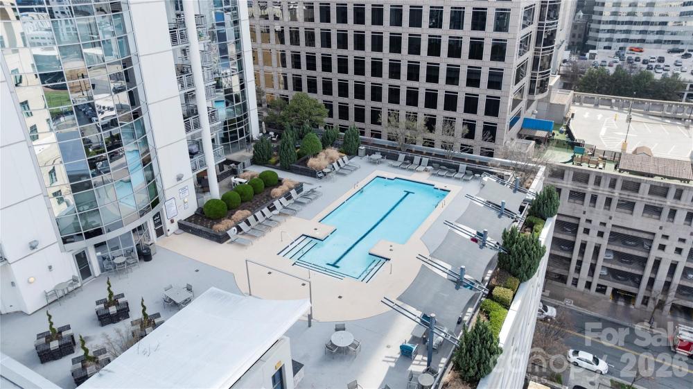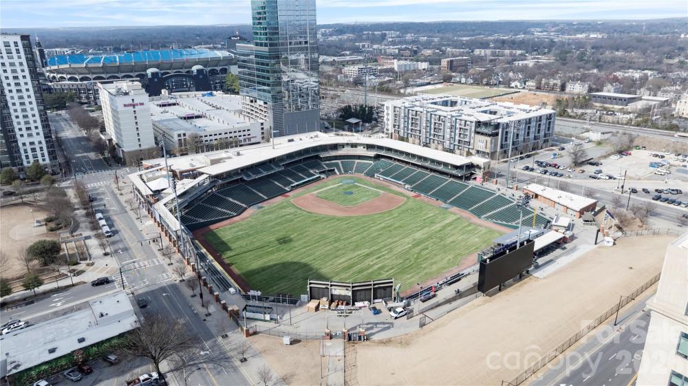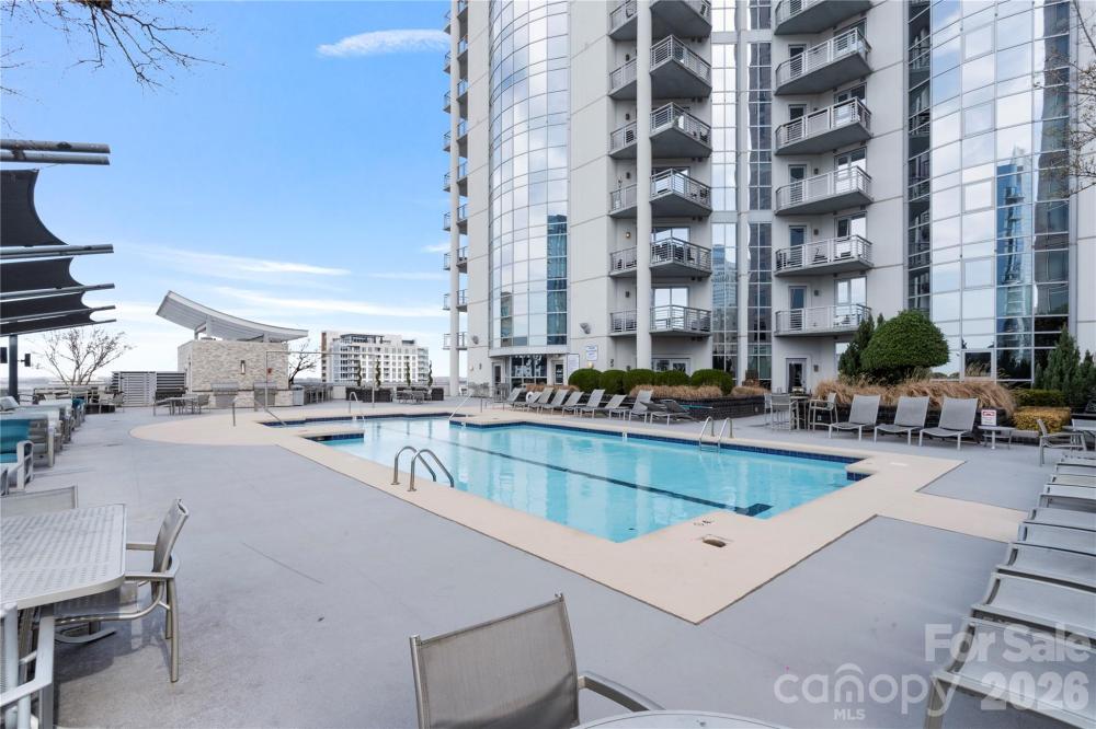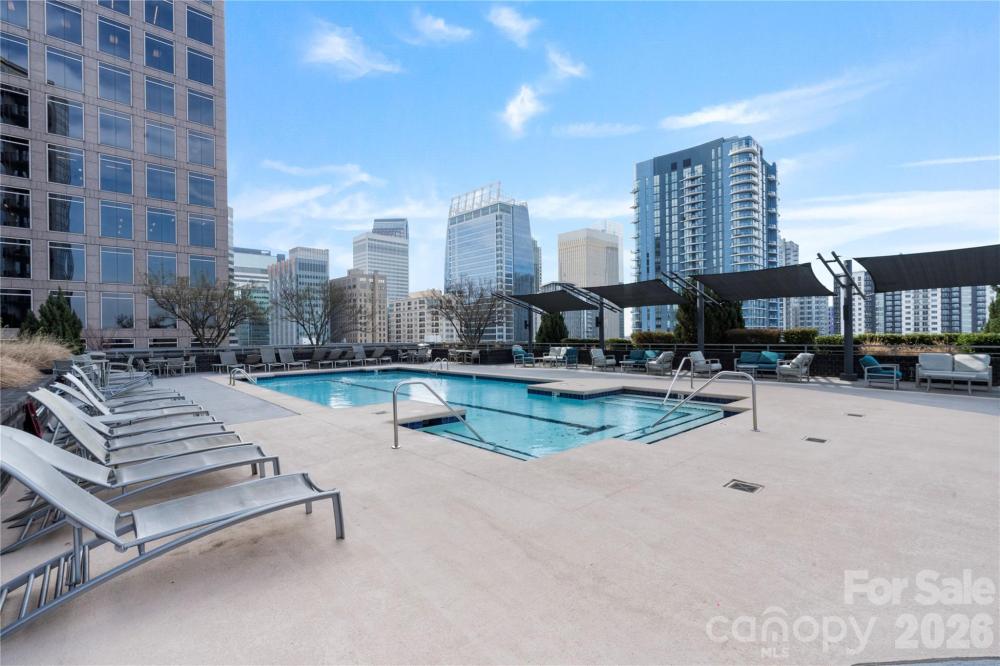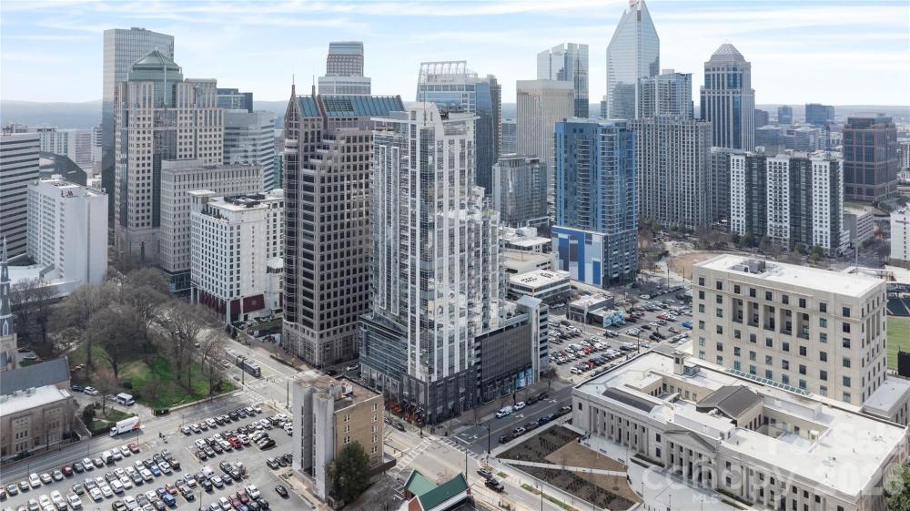 Experience elevated Uptown living at Trademark Condominium from this stylish 21st-floor contemporary condo featuring sweeping skyline views and stunning sunset panoramas. Floor-to-ceiling windows fill the open-concept living space with natural light, while the modern kitchen offers a granite island, upgraded lighting, and seamless flow ideal for both everyday living and entertaining. Thoughtfully updated and move-in ready with designer finishes throughout. Enjoy unbeatable walkability to Bank of America Stadium, Spectrum Center, Romare Bearden Park, premier dining, nightlife, and the light rail, with convenient access to I-77. Trademark residents enjoy exceptional amenities including a sky-level pool deck with grills and fire pit, fitness center, renovated resident lounge, secure access, and covered parking—offering the perfect blend of luxury, convenience, and urban lifestyle in the heart of Uptown Charlotte.