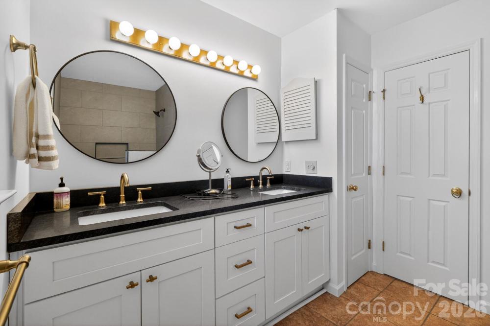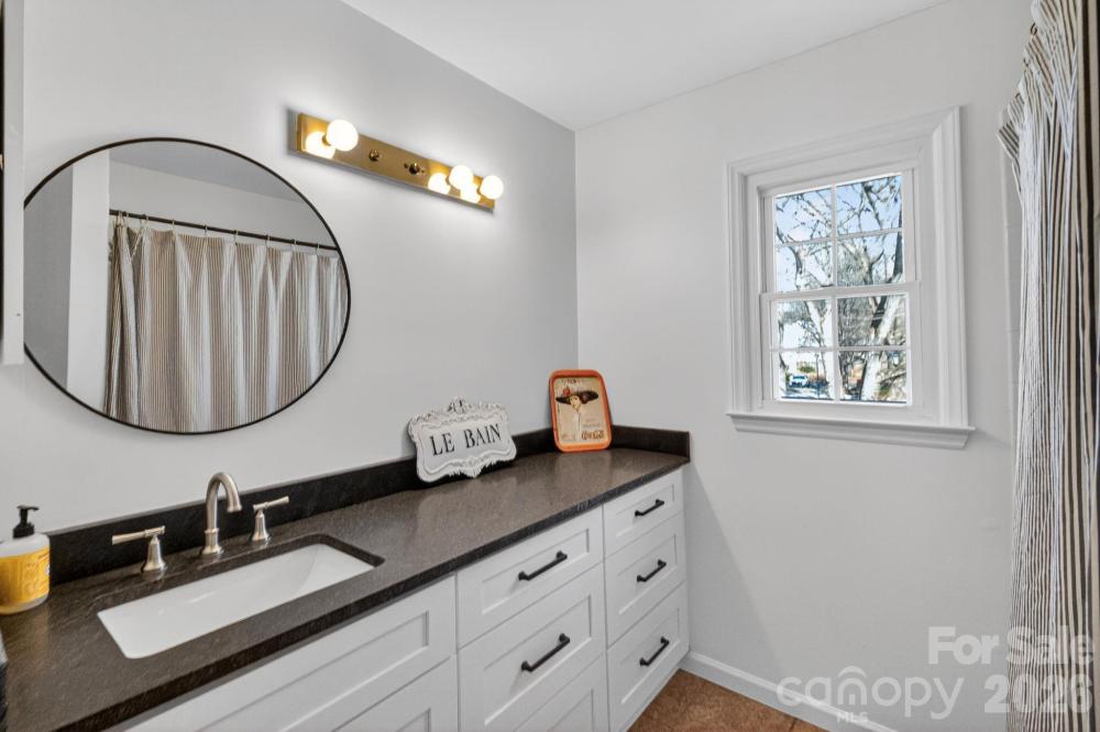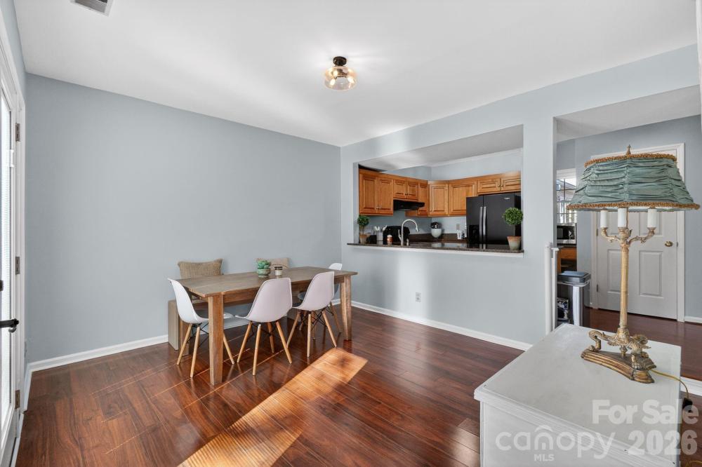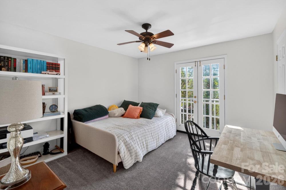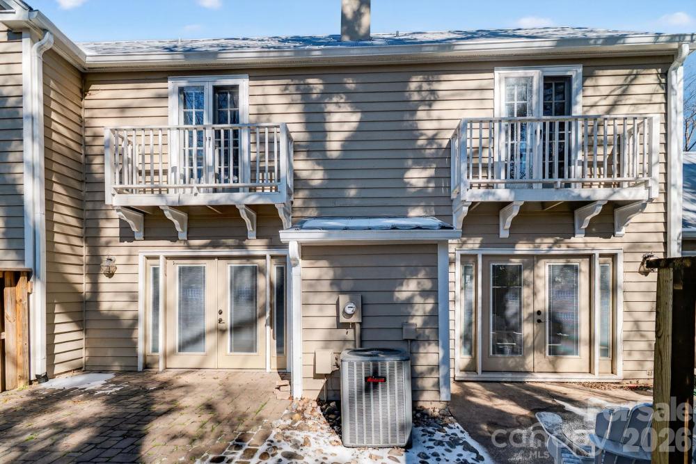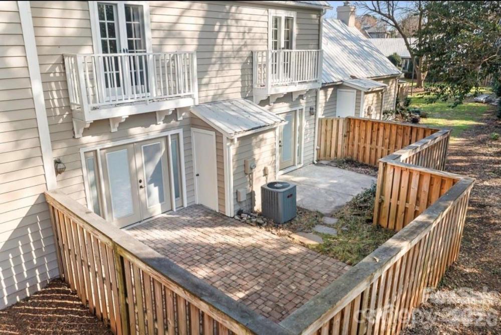 Enjoy the perfect blend of privacy and prime location in a picturesque neighborhood filled with tree-lined streets and a welcoming community pool. This delightful cottage-style condo features a secluded patio surrounded by a privacy fence, offering your own outdoor retreat. Nestled in the heart of Sedgefield, you are just moments from South End, Park Road, and Dilworth, with coffee shops, restaurants, and parks all within easy reach. Step inside to discover a living room brimming with character, complete with a cozy fireplace and elegant French doors that open to the backyard patio and fresh paint throughout. The open kitchen flows seamlessly into the dining area, with space for a breakfast bar and direct access to the patio through another set of French doors. An updated half bath graces the main level. Upstairs, unwind in the primary bedroom, where charming doors overlook the patio, and indulge in the newly renovated primary bath with a new luxurious shower, vanity, sink, & mirrors. The conveniently located hallway washer and dryer serve both bedrooms. The second bedroom offers its own en-suite bathroom, updated vanity, sink and mirror and a walk-in closet, with more charming doors framing views of the patio. The patio also has an outside storage area. The delightful, charming condo won't last long, it's just waiting for you to enjoy.