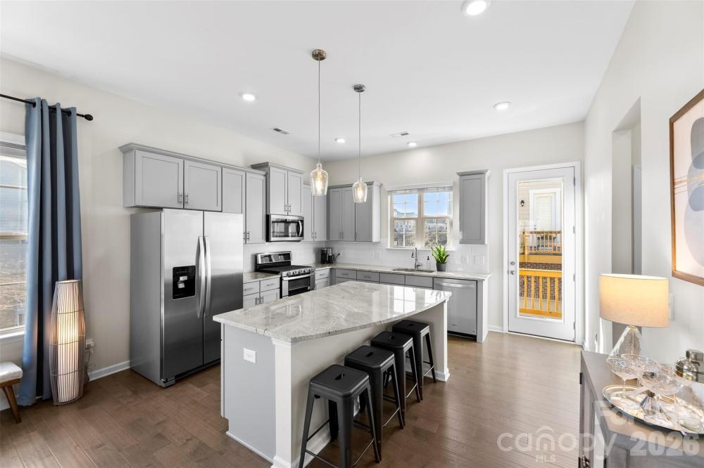 Welcome to this beautiful three-story END-UNIT townhouse! The first level welcomes you with a generous entryway, a home office, and a two-car garage. Upstairs, the main floor offers an inviting open-concept layout with 10-ft ceilings and abundant windows and natural light. The kitchen is beautifully appointed with granite countertops, 42-inch gray cabinets, a tile backsplash, stainless steel appliances, and a gas double oven range. The refrigerator is included! The walk-in pantry provide ample storage space. The third floor features two spacious bedrooms, each with its own en-suite bathroom. The primary suite boasts a tray ceiling, a large closet, and a bathroom complete with a double vanity and walk-in shower. The washer and dryer are also included. The community amenities include a resort-style outdoor pool with plenty of seating, a cabana, grilling area, lawn/landscaping maintenance and more! Ideally located close to the Arrowood light rail station, this home offers easy access to I-77 and South Boulevard for a seamless commute. And enjoy nearby outdoor recreation with multiple greenway entrances within two miles. Come check it out!