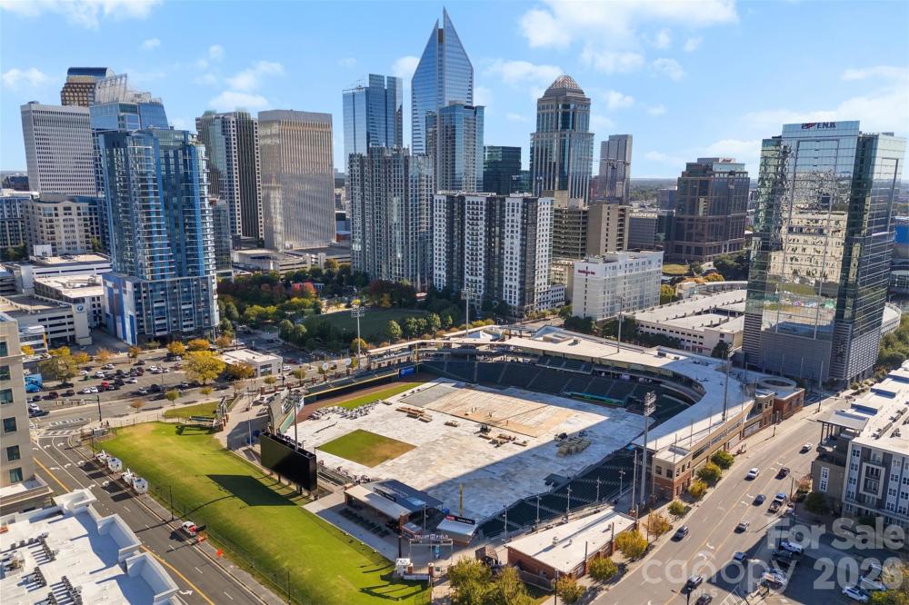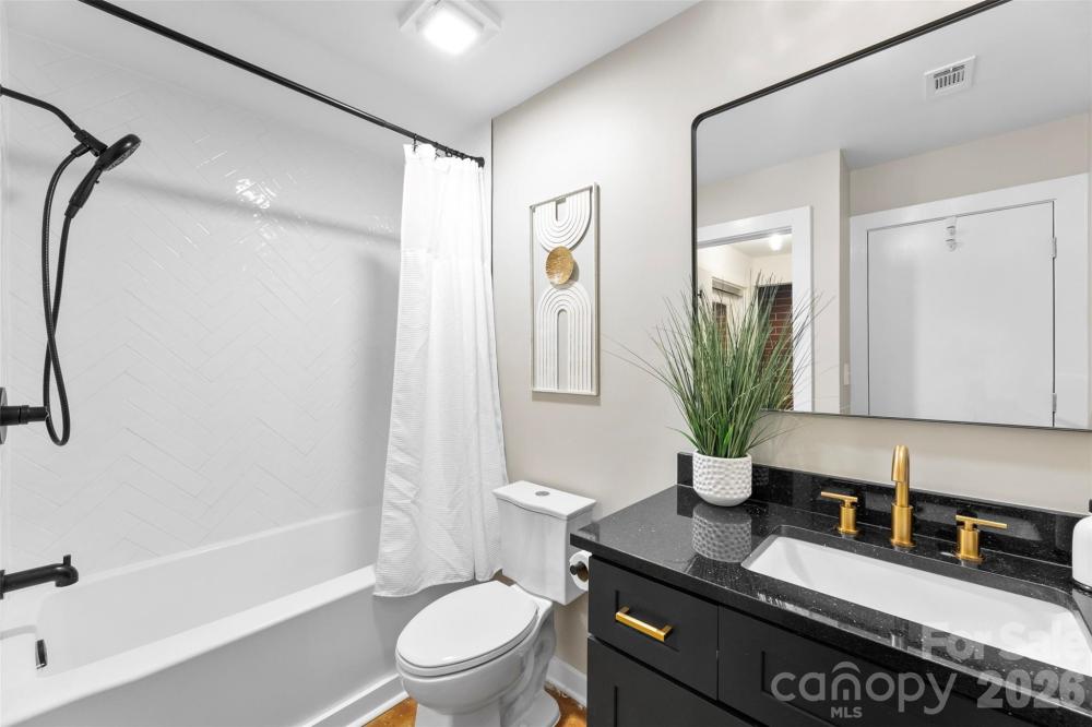 The 626 North Graham building is friendly to both SHORT & LONG TERM RENTALS! Experience the charm of Uptown's historic Fourth Ward in this beautiful condo renovated in 2025! This move-in ready 1-bed, 1-bath unit features fresh paint, high-end light fixtures, and countless updates. Situated on the 2nd floor, it offers views of Uptown and showcases sleek industrial elements like an open floor plan, concrete floors, brick walls, exposed ductwork, floor-to-ceiling windows, and 11-foot ceilings. The kitchen boasts new wood soft close cabinetry, granite countertops, a white herringbone backsplash, and gold fixtures, complete with a LG fridge (2025) and 7-ft peninsula for counter seating. The full bathroom has been tastefully renovated with white tile, convenient shampoo niches, and a spacious new vanity with gold and matte black accents throughout. Additional features include multiple closets finished with closet systems and a laundry closet equipped with a washer & dryer combo. You'll also enjoy the convenience of an assigned parking spot and secure building entry with an elevator. The HOA includes water/sewer & trash removal. This prime location offers easy access to Uptown, I-277, the light rail & gold line, Camp North End, Optimist Hall, and much more. Don’t miss your opportunity to explore 626 North Graham!