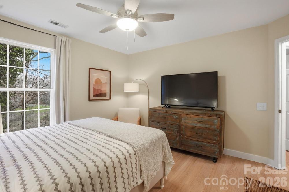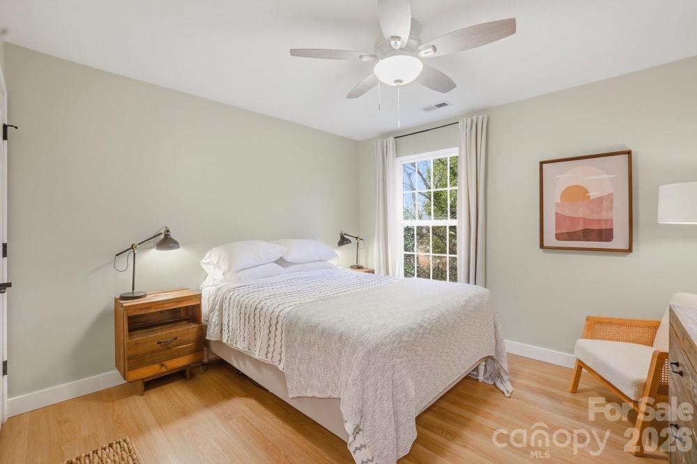 Beautifully updated end-unit townhome in an unbeatable Charlotte location near Park Road Shopping Center. This move-in ready home features fresh paint throughout, all new flooring, updated lighting, and a modernized fireplace with new tile and paint. Both full bathrooms have been refreshed with new mirrors and lighting. The open-concept main level offers great flow for everyday living and entertaining, with granite countertops, stainless steel appliances, bar seating, and a separate eat-in area overlooking the backyard. Upstairs, the spacious primary suite features vaulted ceilings, a walk-in closet, and a bath with dual sinks, soaking tub, and separate shower. Two additional bedrooms share a convenient hall bath. End-unit privacy, additional parking, and stylish updates throughout—all with the opportunity to personalize the kitchen. A rare find in a prime location!
