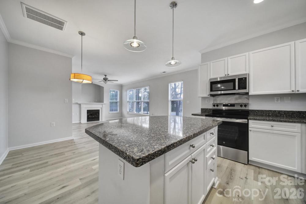 Updated, open concept townhome located in the heart of Ballantyne! 3 bedroom and 2.5 bath with a 1 car garage. An ideal location in a quiet neighborhood. Great kitchen, with island and stainless steel appliances & granite counters. Main level LVP flooring. Large family room w/ gas fireplace opens to rear patio. Primary bedroom with walk in shower. Two year old roof . Five minutes to the new Ballantyne Bowl, offering amphitheater, restaurants, & more. Check it out at thebowlnc.com Lynx Light Rail 12 min. Charlotte Airport 25 min. Ballantyne shopping 5 min. Blakeney shopping 7 min. US National Whitewater Center 25 min. Close to Uptown, South Park, & South End.(Times are estimated)