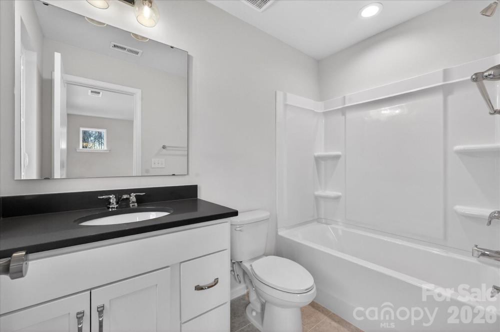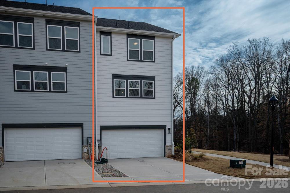 This new Charlotte townhome has 3 bedrooms, all with private baths, plus a powder room on the main floor; great for roommates or visitors! Located only 2 miles from UNC Charlotte and walking distance to Toby Creek Greenway, there are many restaurants and shops minutes away. 2 nearby LYNX light rail stops make traveling to Uptown Charlotte, Southend, and NoDa a breeze. The first floor has a 2-car garage and guest suite. Enjoy the open layout on the second floor, with 9' ceilings and a covered terrace with nice green space views. This is an ideal space for entertaining, with the kitchen and dining/living area flowing together. The Kitchen features a large island with space for bar stools on both sides, quartz counters, 42" white cabinets, double trash pullout, pantry closet, and GE stainless steel appliances with a gas range. The third floor hosts a laundry closet with space for a full-size stacked washer/dryer, and two bedrooms. The primary bedroom has a walk-in closet and bathroom with large tiled shower and a double-sink vanity. All full baths have tiled floors. Terrace has durable TREX decking. This townhome is designed so you can enjoy life, not maintenance. Convenient driveway and street parking available.