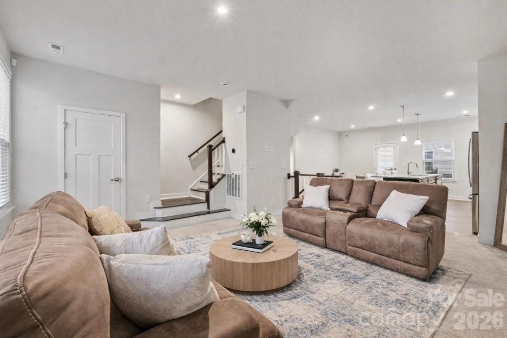 Welcome to this beautifully maintained 3 story townhome in the heart of North Charlotte, where convenience and modern living come together. Located just minutes from I-485, UNCC, Concord Mills, and Uptown Charlotte, you’ll enjoy easy access to shopping, dining, entertainment, and major commuting routes. The entry level features a spacious 2-car garage with additional storage and a versatile flex space, perfect for a home office, gym, or creative studio. Upstairs, the main living level is filled with natural light and showcases an open-concept layout designed for both everyday living and entertaining. Luxury vinyl plank flooring flows throughout the space. The kitchen is thoughtfully appointed with granite countertops, tile backsplash, 42-inch cabinetry, stainless steel appliances, pantry, and a large center island with bar seating. The dining area opens to a private balcony, offering the perfect spot to relax or unwind. The upper level features a spacious primary suite with a walk-in closet and private bath complete with a dual-sink vanity and tiled shower. Two additional bedrooms, a full bath, and a conveniently located laundry area complete the third floor. Move-in ready and designed for low-maintenance living, this home offers comfort, style, and location all in one. Schedule your showing today.