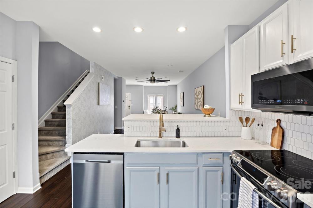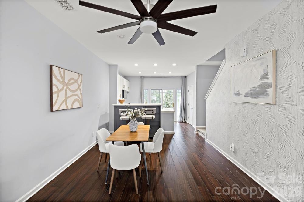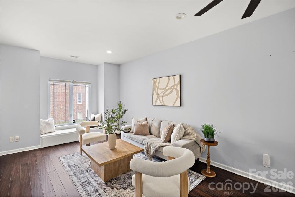 Welcome to this beautifully updated 3 bed / 3.5 bath townhome tucked away in Preston Townhomes in sought-after Madison Park. Designed with both style and functionality in mind, this three-story residence offers thoughtful upgrades throughout and a versatile floor plan ideal for today's living. The open-concept main level features a living room, dining area, updated half bath, and a renovated kitchen - perfect for entertaining! The spacious living area allows for a flexible seating arrangement and has a charming built-in window seat with hidden storage, adding both character and convenience. The kitchen boasts neutral custom cabinetry, an extended quartz countertop with a decorative tile backsplash, stainless steel appliances including an added wine fridge, and a peninsula with bar seating. Upstairs on the third level, the generous primary suite is a true retreat, thanks in part, to an updated en-suite bathroom with a double vanity and a glass-enclosed shower. The secondary bedroom also has its own en-suite bath with a freestanding soaking tub and an upgraded vanity. Custom closet organizers enhance storage in both upper-level bedrooms. The lower level offers incredible flexibility and has wood-look tile flooring throughout. The third bedroom could easily be used as a home office or multi-use space. Plus, it has access to its own refreshed bathroom. Additional home highlights include: engineered hardwood floors, recessed lighting, and motorized blinds on the main and upper levels. All bathrooms have been updated with quartz countertops and modern lighting. The garage features new epoxy flooring, fresh paint, and a separate utility storage closet. Multiple outdoor spaces, including a concrete paver patio on the lower level and a balcony off the kitchen on the main level, add to the home’s overall appeal. All located just minutes from world-class dining and shopping at Park Road Shopping Center and SouthPark Mall. This move-in-ready townhome offers the perfect blend of comfort, style, and location!