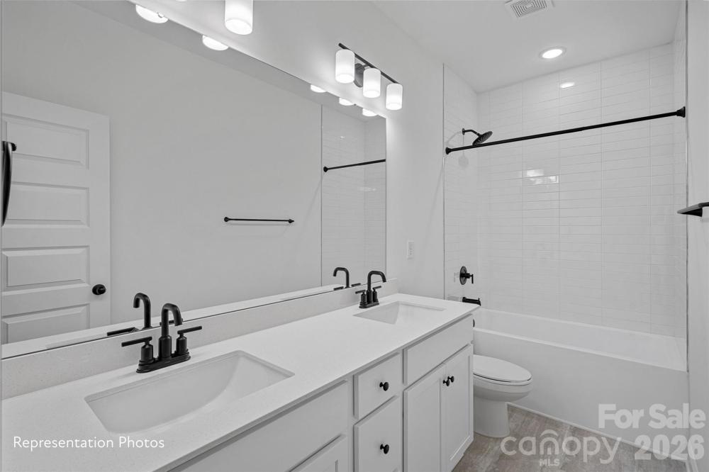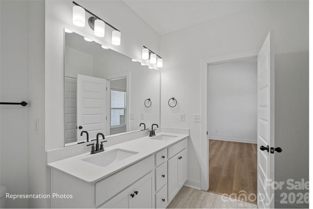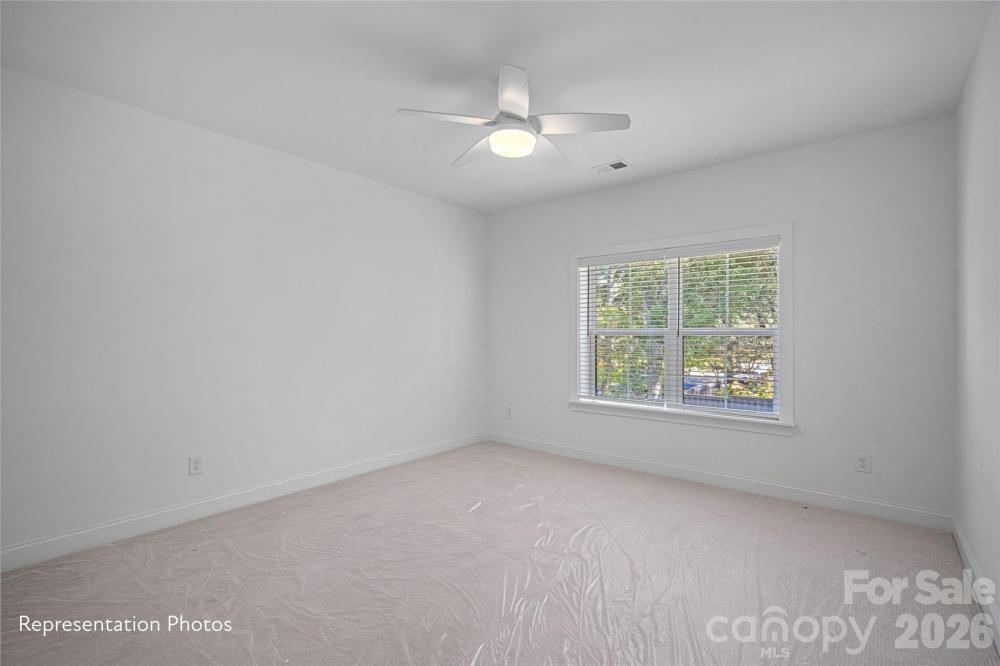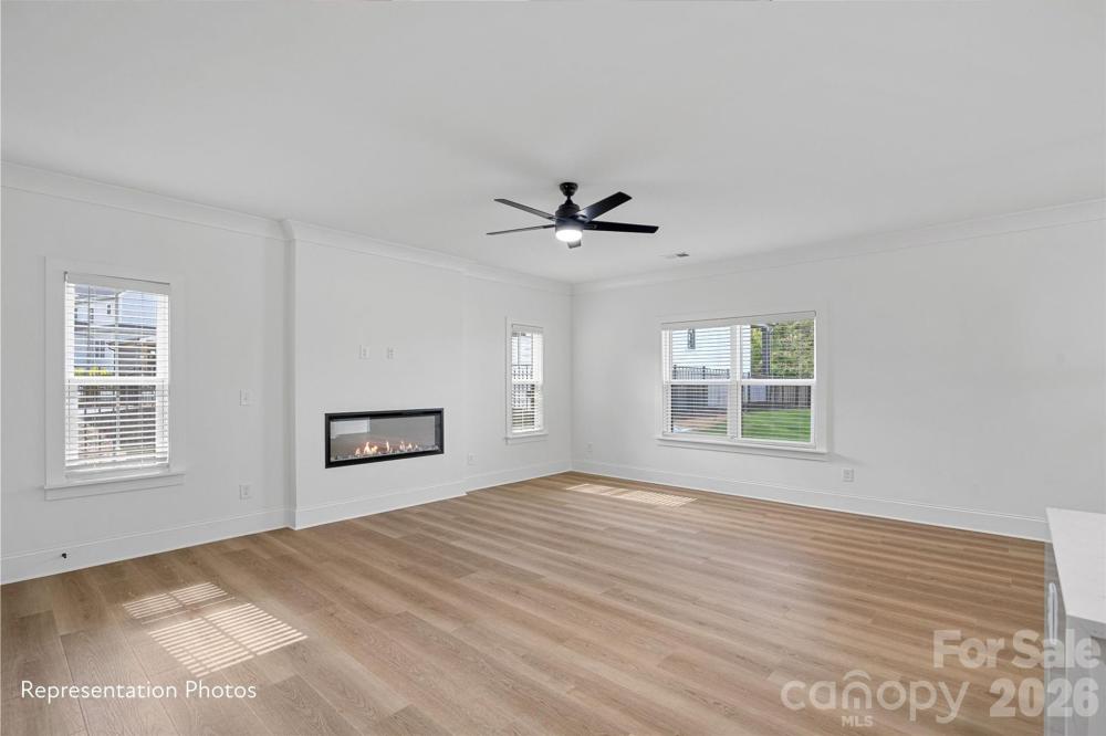 Welcome to Castleton Place featuring the Gibson II plan — delivers impressive space and functionality with exceptionally sized bedrooms. This thoughtfully designed home offers 3 bedrooms plus a flex space and an upstairs laundry room conveniently located with all bedrooms. The main level features wide-plank flooring throughout, continuing up the staircase and into the primary suite. The gourmet kitchen includes 42" upper cabinets, Carrara waterfall countertops, a beverage/coffee bar upgrade, professional gas range with hood, microwave drawer, dishwasher, and beverage refrigerator — perfect for everyday living and entertaining. The living area is highlighted by a modern linear fireplace, while crown molding and 5-panel doors add elevated detail throughout. Enjoy the rare benefit of NO HOA restrictions, allowing you to create your own private oasis while being surrounded by established multi-million-dollar homes in a desirable Charlotte location with sought-after schools. Additional features include architectural roof shingles, tankless water heater, gas line for outdoor grilling, EV charger pre-wire, and privacy fencing between homes. Conveniently located just minutes from Uptown Charlotte. Homes are currently under construction. Photos are representative and may vary from completed homes.