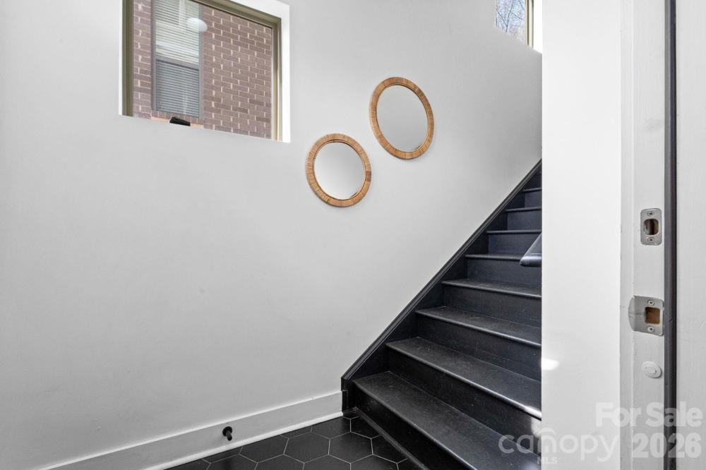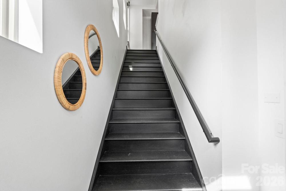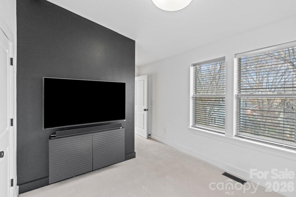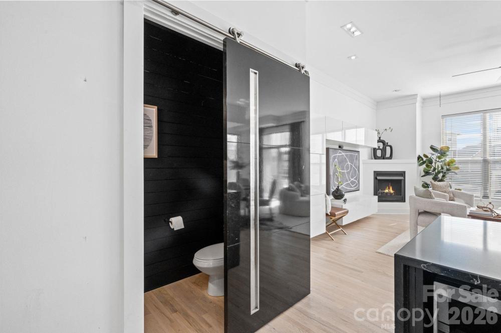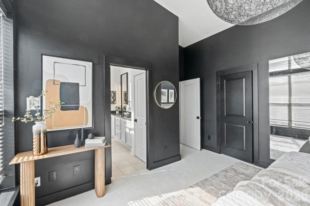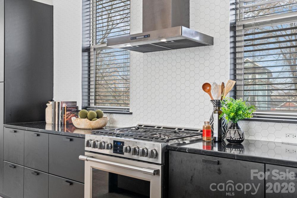 Beautifully updated end-unit townhome in Steel Gardens, offering stylish upgrades and abundant natural light. Thoughtfully renovated with modern design touches throughout, this home features an open-concept living space centered around a sleek kitchen with black quartz countertops, stainless steel appliances, and a striking waterfall island that anchors the space. The living area is enhanced by soaring ceilings and a custom built-in media center with generous storage, creating both function and visual appeal. The main level includes access to the two-car garage and inviting outdoor spaces, including a private back patio and cozy balcony - perfect for relaxing or entertaining. Upstairs, both bedrooms feature en-suite bathrooms, recently refreshed with new paint and mirrors, along with a conveniently located laundry area. This end-unit position provides added privacy with no homes directly in front or behind, thanks to a large greenspace and guest parking area. Located just moments from the heart of NoDa, you'll enjoy easy access to some of Charlotte’s best restaurants, breweries, galleries, music venues, and neighborhood hotspots.