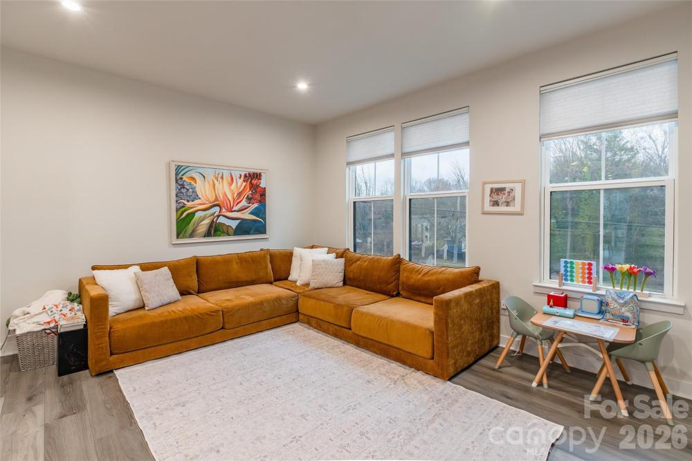 Modern luxury meets unbeatable convenience in this stunning four-story townhome ideally positioned in the heart of Charlotte, just minutes to Uptown, SouthPark, Cotswold, and Plaza Midwood. This is city living without compromise. The entry level welcomes you with a versatile open space complete with a full bath, perfect as a private guest suite, home office, gym, or flex space tailored to your lifestyle. Upstairs, the main living level is filled with natural light and designed for effortless entertaining. The open-concept kitchen flows seamlessly into the spacious family room and dining area, creating a bright and inviting atmosphere. Step out onto your private porch to enjoy morning coffee or unwind with a glass of wine as you take in rare, tree-lined views both in front and behind the home, a true luxury in this prime location. The top level offers yet another expansive flex space with a full bath attached, making it ideal for a second primary suite, media room, or creative studio. From here, step onto the large rooftop terrace, your own elevated retreat, perfect for hosting friends, relaxing under the stars, or simply enjoying the peaceful greenery surrounding you. With modern design, flexible living spaces, and breathtaking views rarely found this close to the city's most sought-after destinations, this exceptional townhome delivers the best of Charlotte living.