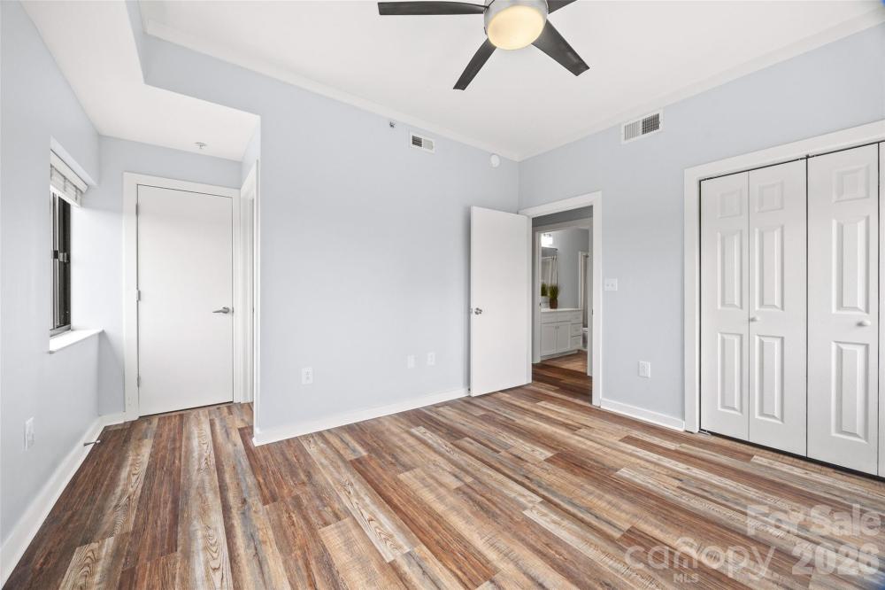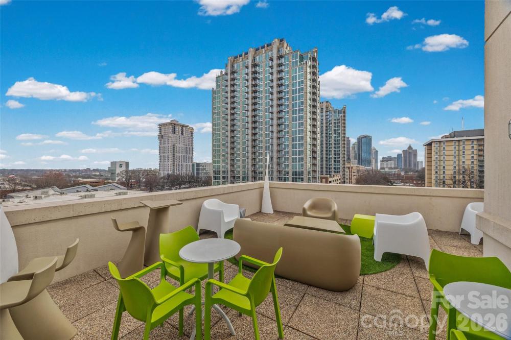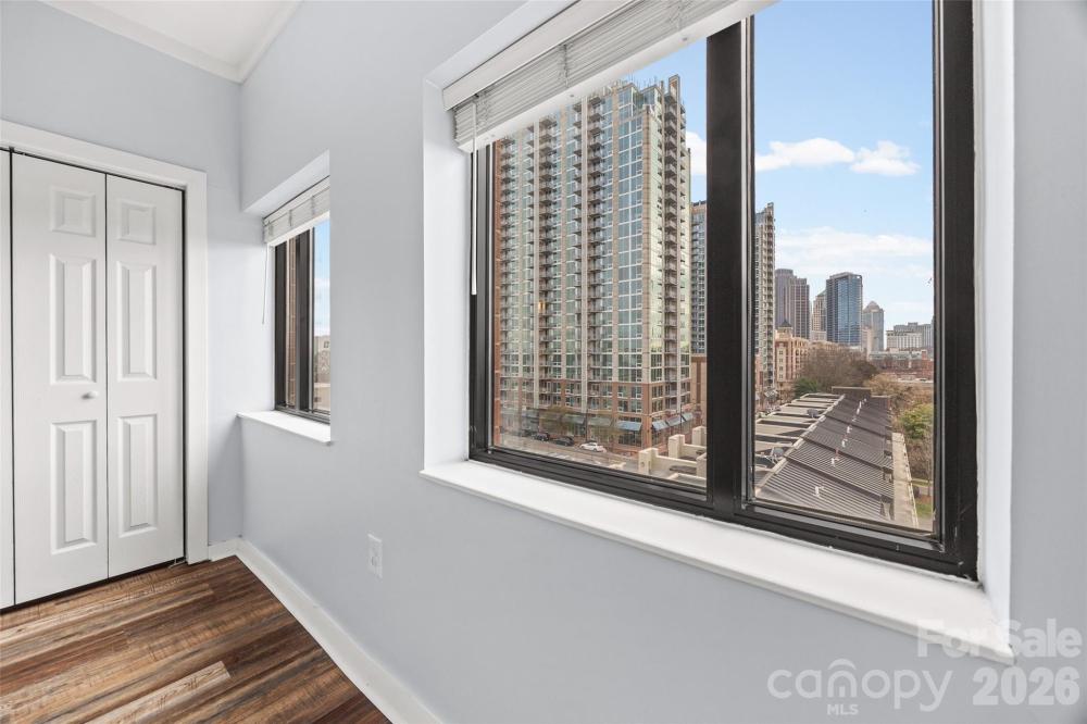 Located on the 7th floor corner of a beautiful Fourth Ward building, this two-bedroom, two-bathroom condo offers stunning year-round views of the Uptown skyline. The home features neutral paint tones, updated flooring, and plenty of natural light throughout. The living room includes a gas fireplace and direct access to a private balcony overlooking the community pool. The kitchen is equipped with white cabinetry, stainless steel appliances—including a 2021 gas range and a 2024 dishwasher—and the refrigerator will remain. A convenient laundry closet contains a stackable washer and dryer (2022), which will remain. The primary bedroom sits on the corner of the unit and features windows along two walls, a closet, and an ensuite bathroom with a shower. The secondary bedroom also enjoys Uptown views and is served by a hall bathroom that includes a large vanity and a tub/shower combination. The secure building offers controlled key-fob access, a welcoming lobby, elevators, an outdoor pool (with new pool furniture arriving soon!), and a parking garage. This condo includes one assigned parking space. The unit is also just one flight of stairs or a quick elevator ride to the rooftop terrace, where residents can enjoy Uptown views or make use of the grilling station. The HOA recently installed a new roof. Fourth Ward is known for its charming neighborhood parks, delicious restaurants, and lively seasonal festivals. The condo is located less than half a mile from the 9th Street light rail station and offers easy access to everything Uptown has to offer—including sporting events, nightlife, dining, and the arts.