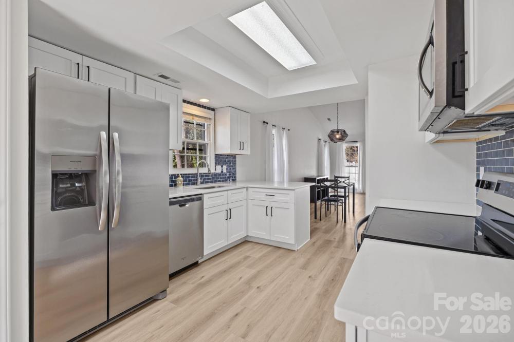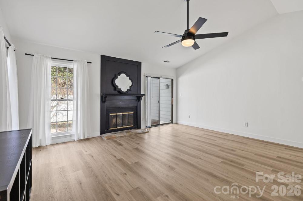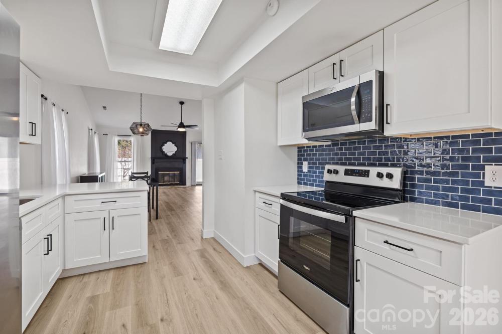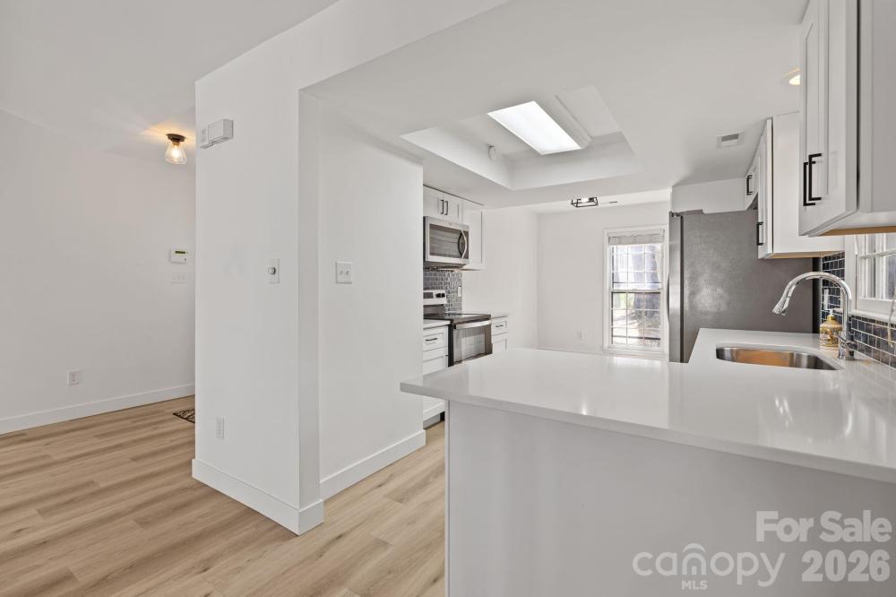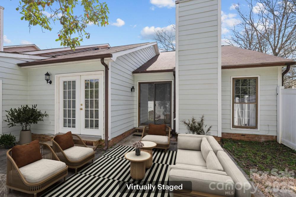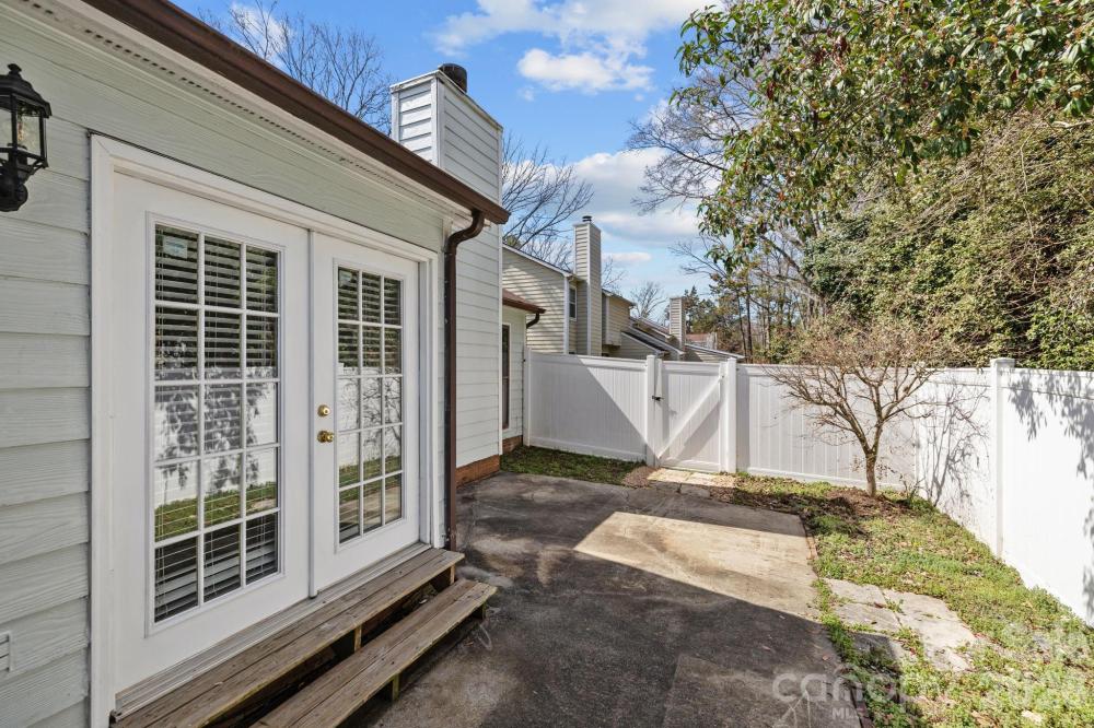 Welcome home to this stunning one-level, two-bedroom, two-bathroom end-unit townhome in an unbeatable location. Just minutes from the local restaurants, shops, trails, the Ballantyne Bowl and more! Nestled in a beautifully maintained two-street community with a well-managed HOA with low HOA fees, this home offers both comfort and peace of mind. Pull into your private driveway and step inside to discover a bright and inviting atmosphere throughout. The home features brand-new quartz countertops, elegant white shaker cabinets, and luxurious wide-plank vinyl flooring throughout. Recent updates include a new hot water heater, toilets, light fixtures, sinks, glass shower door, and a newly fenced back patio—perfect for relaxing or entertaining. The kitchen shines with a new refrigerator, stove, and microwave—and yes, the refrigerator, washer, and dryer all convey! For sale as-is!