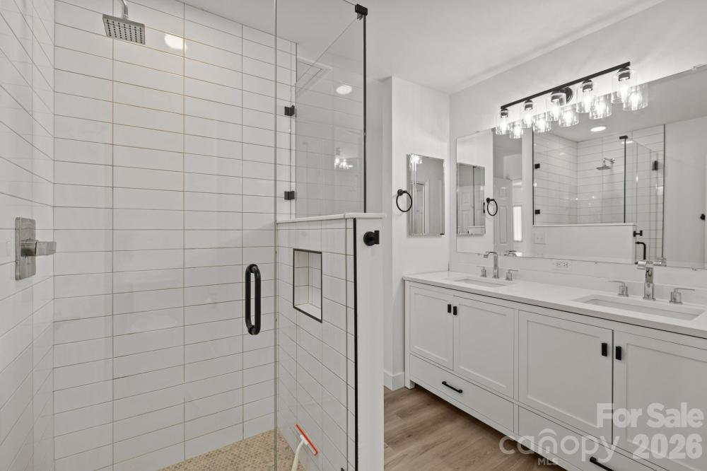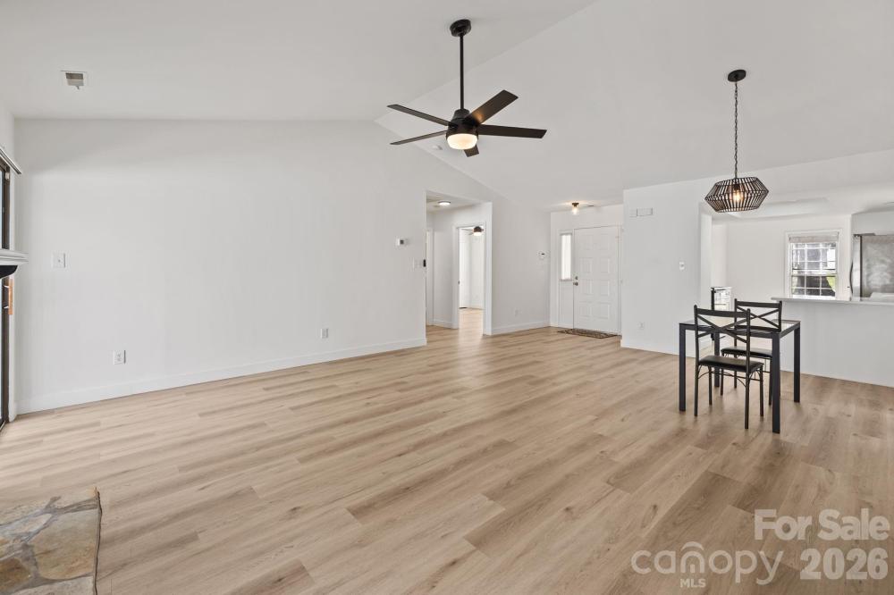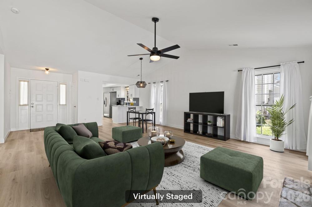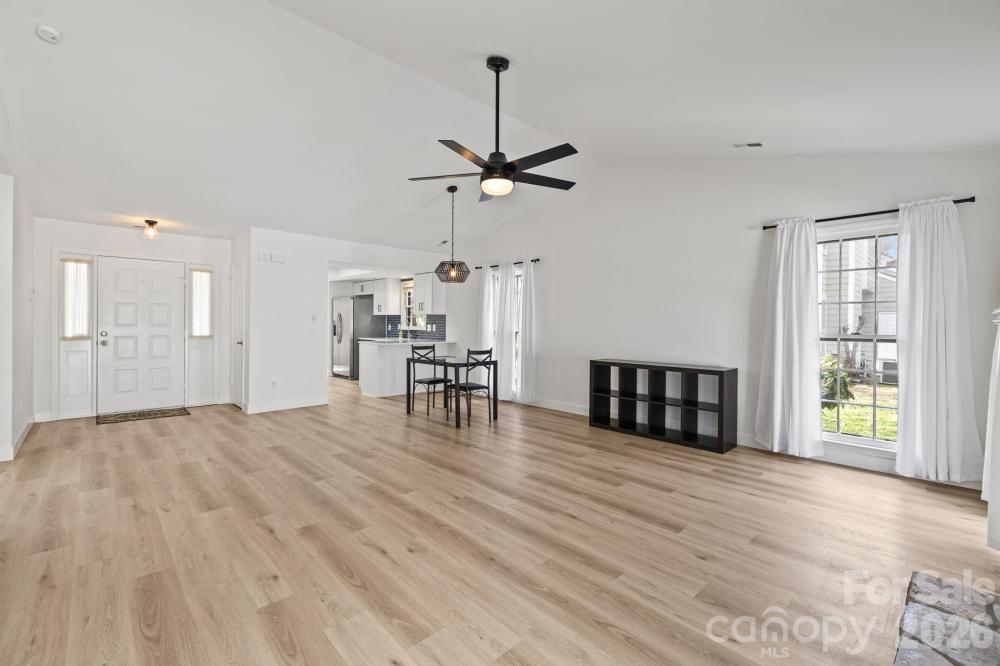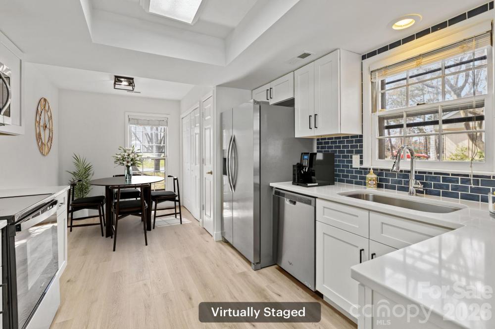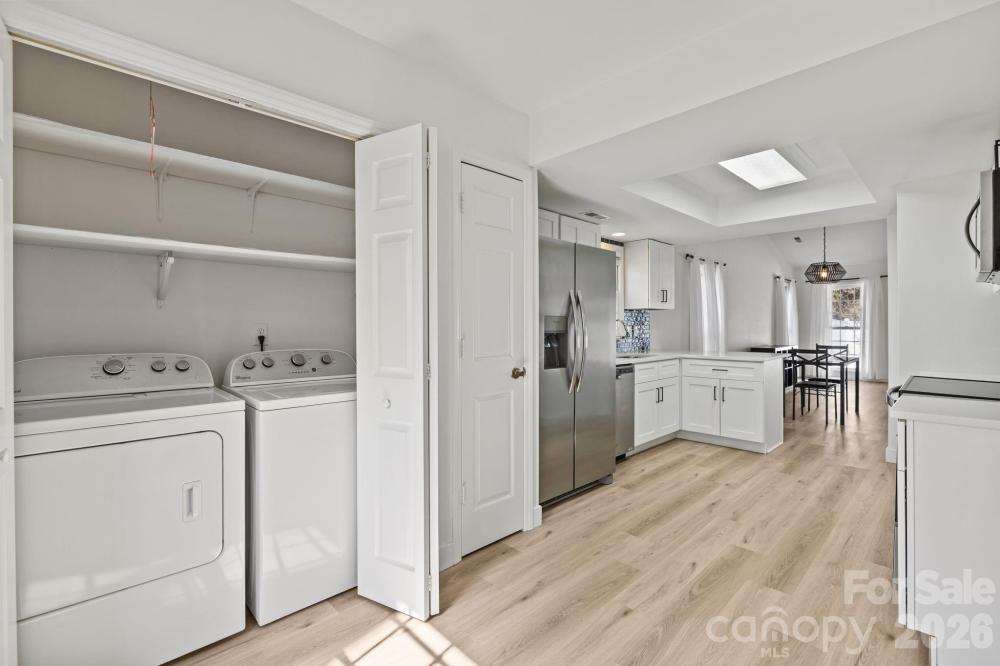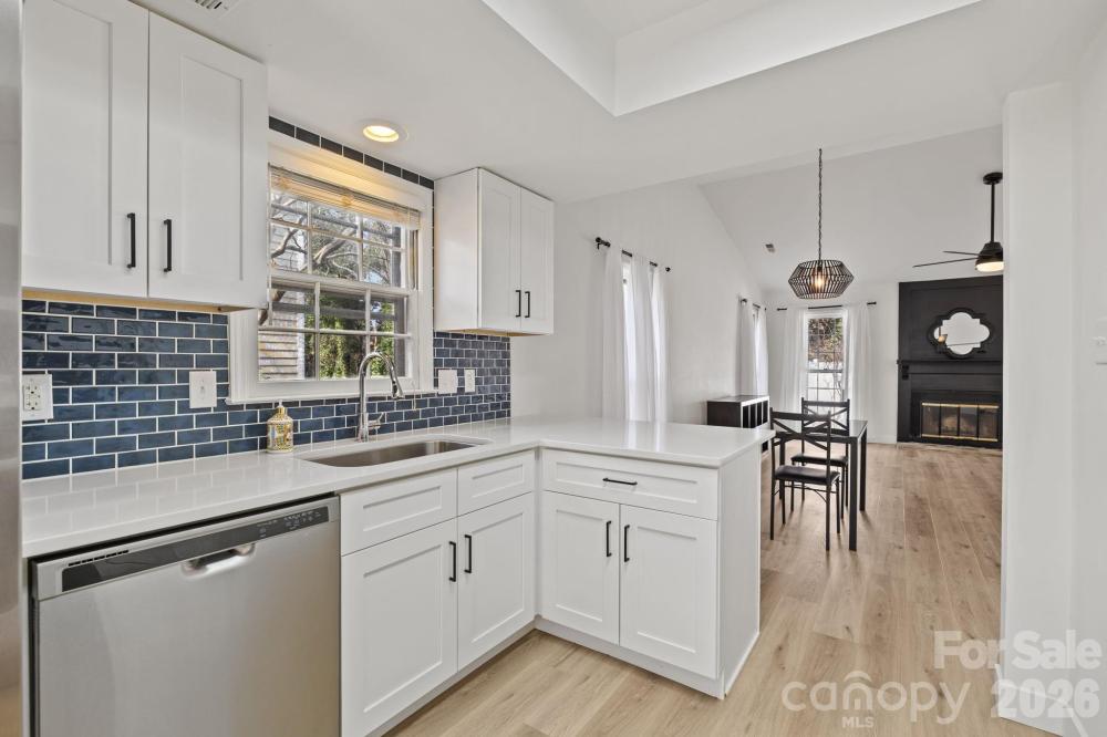 Welcome home to this stunning one-level, two-bedroom, two-bathroom end-unit townhome in an unbeatable location. Just minutes from the local restaurants, shops, trails, the Ballantyne Bowl and more! Nestled in a beautifully maintained two-street community with a well-managed HOA with low HOA fees, this home offers both comfort and peace of mind. Pull into your private driveway and step inside to discover a bright and inviting atmosphere throughout. The home features brand-new quartz countertops, elegant white shaker cabinets, and luxurious wide-plank vinyl flooring throughout. Recent updates include a new hot water heater, toilets, light fixtures, sinks, glass shower door, and a newly fenced back patio—perfect for relaxing or entertaining. The kitchen shines with a new refrigerator, stove, and microwave—and yes, the refrigerator, washer, and dryer all convey! For sale as-is!