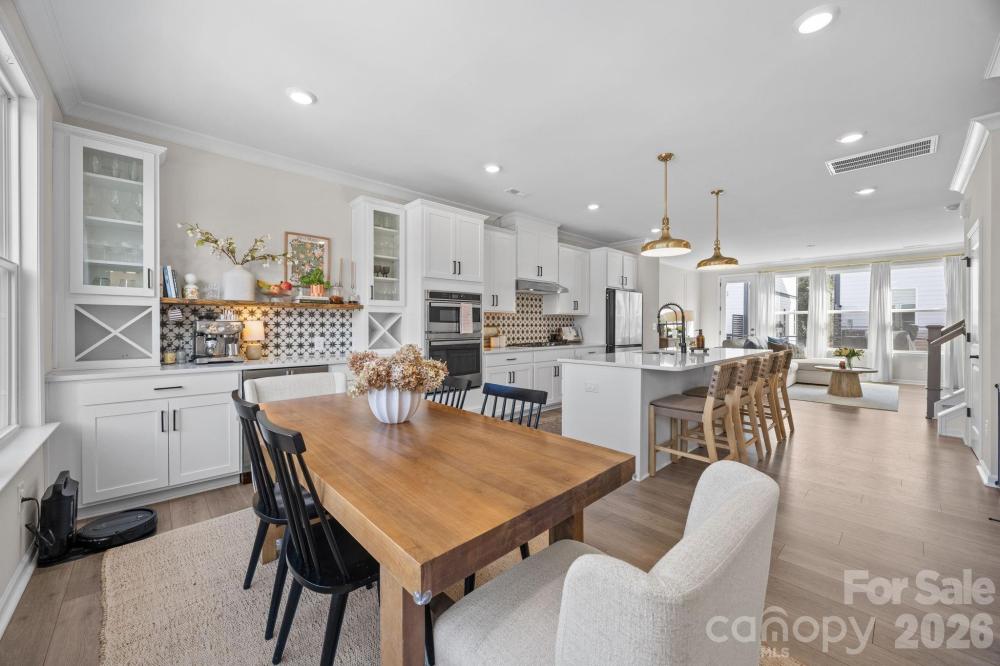 Welcome to this stylish three-bedroom townhome offering a thoughtful layout, beautiful natural light, and inviting indoor and outdoor living spaces! The first floor features a private office and convenient half bath, creating a perfect setup for working from home or a flexible bonus space. Upstairs, the main living area is filled with natural light, with morning sun streaming into the living room—an especially welcome feature in this interior unit. The spacious kitchen is designed for both everyday living and entertaining, featuring a huge center island, stainless steel appliances, a stunning tile backsplash, and abundant cabinet storage. Just off the dining area, a charming coffee bar creates the perfect spot to start your day or host guests. The generously sized primary suite offers a relaxing retreat, complete with a custom walk-in closet system designed to maximize storage and organization. The en-suite bath includes dual vanity sinks and a sleek glass walk-in shower. Two additional bedrooms provide comfortable space for guests, hobbies, or additional office needs. One of the standout features of the home is the rooftop patio—an incredible outdoor space ideal for relaxing, entertaining, or enjoying evening sunsets. Ideally located with convenient access to shopping, dining, and everyday amenities, this townhome combines comfort, style, and functionality in a highly desirable setting!
