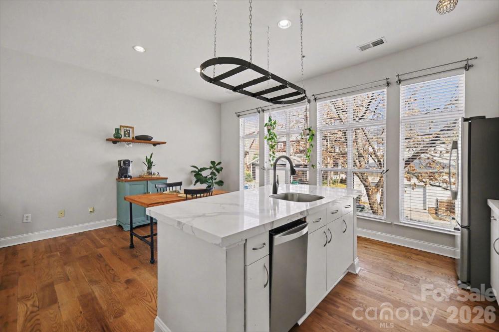Move-in ready First Ward UPTOWN condo — Enter a designer kitchen with stainless appliances, bright white countertops, and an amazing island that flows into the open living area — perfect for entertaining. Your private owner’s retreat occupies the third floor, featuring a full bath plus a flexible loft perfect for an office, sitting area, or media nook. The lower level offers a guest bedroom and full bath with direct walk-out to a private, fenced patio and raised deck for outdoor lounging. Light filled rooms and thoughtful finishes throughout create a calm, modern canvas. Walkable to Alexander Park with 6 tennis/pickle ball courts, soccer field and the sugar creek greenway. Right next to Plaza Midwood and all it has to offer. 2 min drive to Optimist Hall with tons of great food. Extremely close to Camp North End and Tipsy Pickle. Walking distance to the Charlotte Panthers/Hornets games-spectrum center is just half mile walk. Walkable to Tryon Street, Uptown and Amelies, Croquette and other great restaurants. Just minutes away from Southend, noDa and midtown as well!!! Urban living with neighborhood charm!! Schedule your showing today!!!!