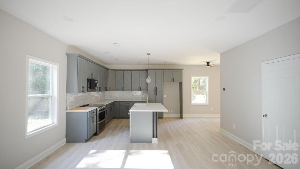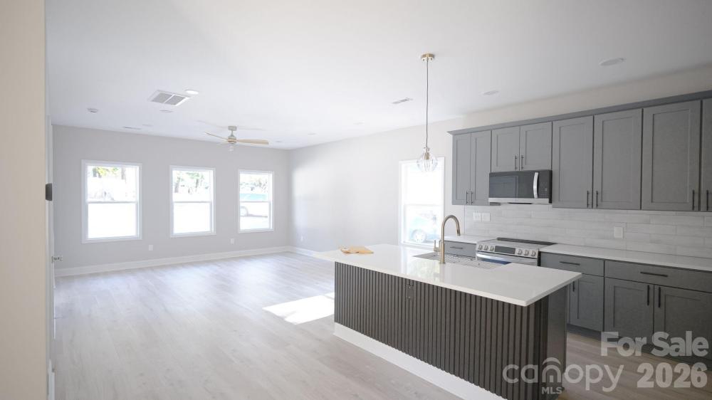 Brand-new duplex townhome near Hwy 77 and 485! Each end-unit offers 1,806 SQFT with an open layout. The chef-inspired kitchen includes 42" shaker cabinets, quartz countertops, stainless steel appliances, a large island, and ample storage—beautifully balancing style and function.premium LVP flooring. Features include Hardie siding, a 2-car garage per unit, and a concrete driveway. No HOA. Ideal for owner-occupants or investors. Minutes to South End, Uptown, CLT Airport, major highways, shopping, and dining. Move-in read. Upstairs, you'll find well-appointed bedrooms, generous closet space, and spa-style tiled showers in the bathrooms. The thoughtful floorplan provides privacy between rooms.