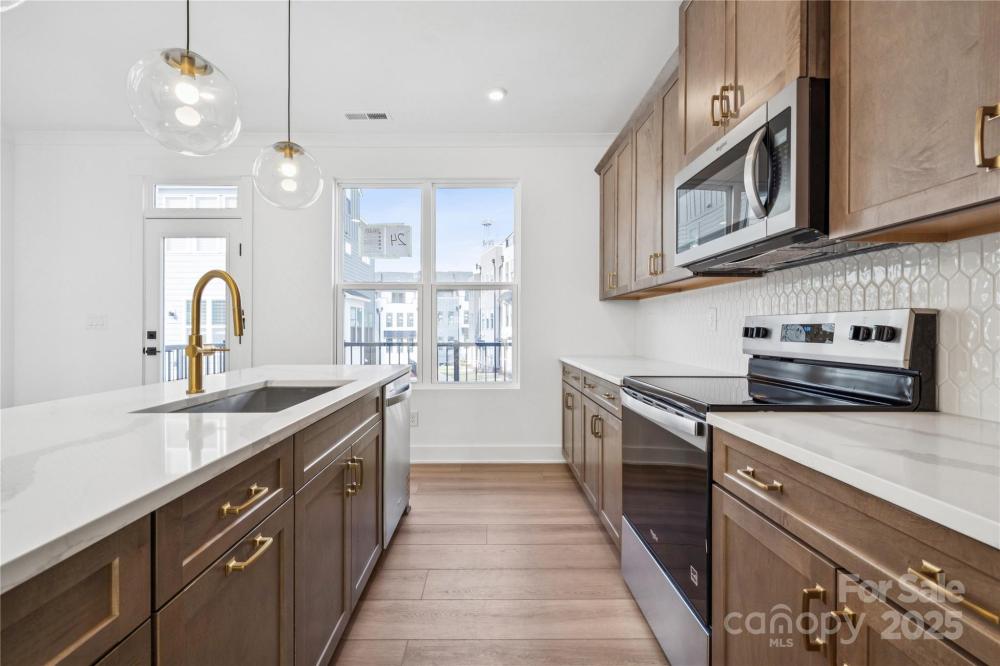 Quick move-in with appliance package included! This 4 bedroom, 4.5 bath, 4-story end-unit townhome features the spacious Roseview floorplan, thoughtfully designed for entertaining with two outdoor spaces—a main level balcony and a rooftop terrace. As an end unit, it offers abundant natural light throughout. The home is beautifully finished with the Modern Farmhouse Designer Package, showcasing rich wood tones and numerous upgraded features. Each bedroom includes its own en-suite bath, ideal for guests or multigenerational living. Don't miss this opportunity—schedule your tour today!