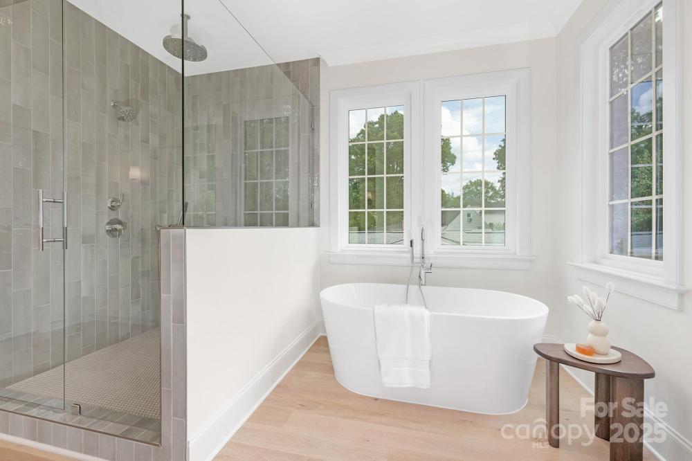 Welcome to this stunning 4-bedroom, 3.5-bathroom duplex end unit in Charlotte’s highly desirable LoSo neighborhood, thoughtfully crafted by Midwood Craft Builders, a local builder known for combining timeless craftsmanship with modern design. Situated in one of the city’s most dynamic and fast-growing areas, this home offers not only exceptional comfort and design but also an unmatched lifestyle defined by walkability, convenience, and community. Just steps from popular breweries, celebrated restaurants, and the light rail station, this property provides a rare opportunity to enjoy all that Charlotte has to offer without compromise. From the moment you arrive, the thoughtful design and curb appeal of this home set it apart. The end-unit placement ensures maximum natural light, privacy, and an enhanced sense of openness rarely found in duplex living. A two-car garage offers both security and convenience, while the fenced backyard provides a private retreat that can be customized into your dream outdoor living space—perfect for gardening, entertaining, or simply enjoying the Carolina sunshine. Step inside and you’ll immediately notice the abundance of natural light streaming through oversized windows, highlighting the open and airy floor plan. The main living level is designed for both everyday living and entertaining, featuring 10-foot ceilings, wide-plank wood flooring, and clean modern finishes. The heart of the home is the chef’s kitchen, equipped with a professional stainless-steel gas range, quartz countertops, custom cabinetry, and a spacious island that doubles as a gathering spot for family and friends. Whether you’re hosting a dinner party, enjoying a casual meal, or simply sipping your morning coffee, this space is both highly functional and effortlessly stylish. The living room flows seamlessly from the kitchen, creating a warm and inviting environment where you can relax, entertain, or unwind. A well-placed powder room on the main level ensures convenience for both residents and guests. Upstairs, you’ll discover the private retreat of the primary suite. Generously sized and filled with light, the primary bedroom is designed to be a true sanctuary. The adjoining luxury bathroom is spa-inspired, featuring an oversized walk-in shower, a standalone modern soaking tub, dual vanities, and designer fixtures that combine functionality with elegance. A spacious walk-in closet provides abundant storage and organization. Three additional bedrooms offer flexibility to accommodate a variety of needs—whether you’re hosting overnight guests, setting up a home office, or creating a dedicated hobby or fitness room. Each bedroom is thoughtfully designed with ample closet space and easy access to well-appointed bathrooms, including a full guest suite with its own private bath. Every detail of this home reflects the commitment to quality and design that Midwood Builders is known for. As a local builder, Midwood takes pride in creating homes that not only look beautiful but also feel connected to the community they serve. This property is a shining example of their craftsmanship, blending modern convenience with lasting appeal. Living in LoSo means having some of Charlotte’s most exciting amenities right outside your front door. The neighborhood is buzzing with energy, from trendy breweries and eclectic eateries to boutique fitness studios and local coffee shops. With the light rail station just a short walk away, Uptown Charlotte, South End, and other destinations are easily accessible, making commuting and exploring the city effortless. This duplex end unit represents a rare opportunity: a beautifully designed, move-in-ready home that offers space, style, and a vibrant location. Whether you’re seeking a forever home, an urban retreat, or simply a place to grow into, this property delivers on every level. Don’t miss your chance to make this exceptional residence in LoSo your own.