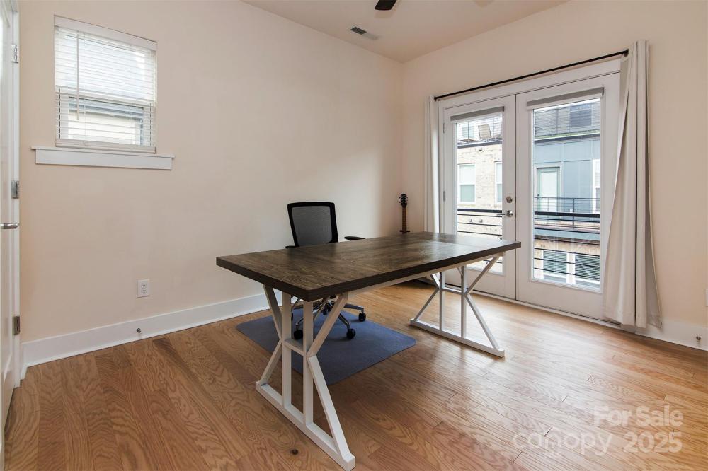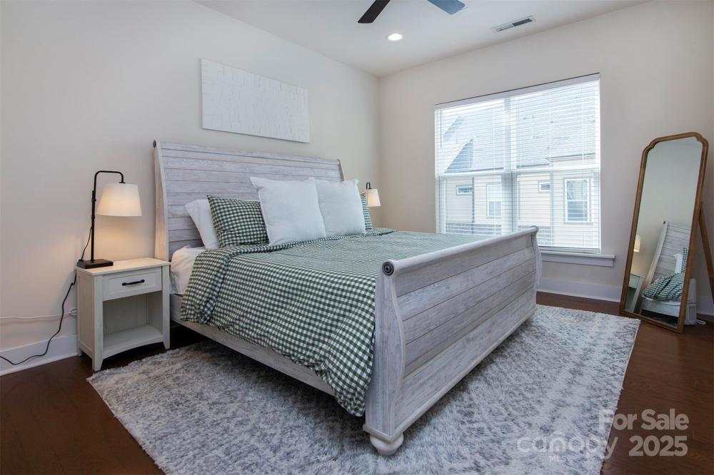 Experience modern living in this beautifully updated, four-story end-unit townhome located in the gated South Village community—right in the heart of LoSo and steps from the Scaleybark Light Rail Station. Enjoy effortless access to restaurants, breweries, shopping, and all that South End has to offer. This move-in-ready home features a spacious open floor plan with hardwoods throughout the main and second levels, a gourmet kitchen with stainless steel appliances, a gas cooktop, a wall oven, granite counters, and a large island perfect for entertaining. Recent updates include an elegantly renovated primary bathroom, freshly painted cabinets, updated second-floor bedroom flooring, and ceiling fans added throughout —adding comfort and style to every room. Each of the three bedrooms includes its own ensuite bath, offering privacy and flexibility, while multiple outdoor spaces—a covered patio, main-level deck, and rooftop terrace—provide plenty of room to relax or host guests. Additional highlights include a two-car tandem garage, ample storage, and secure gated entry. Discover the best of convenience, comfort, and contemporary design in one exceptional townhome.