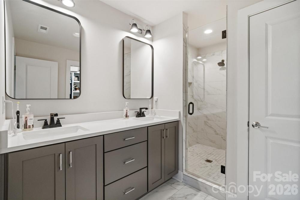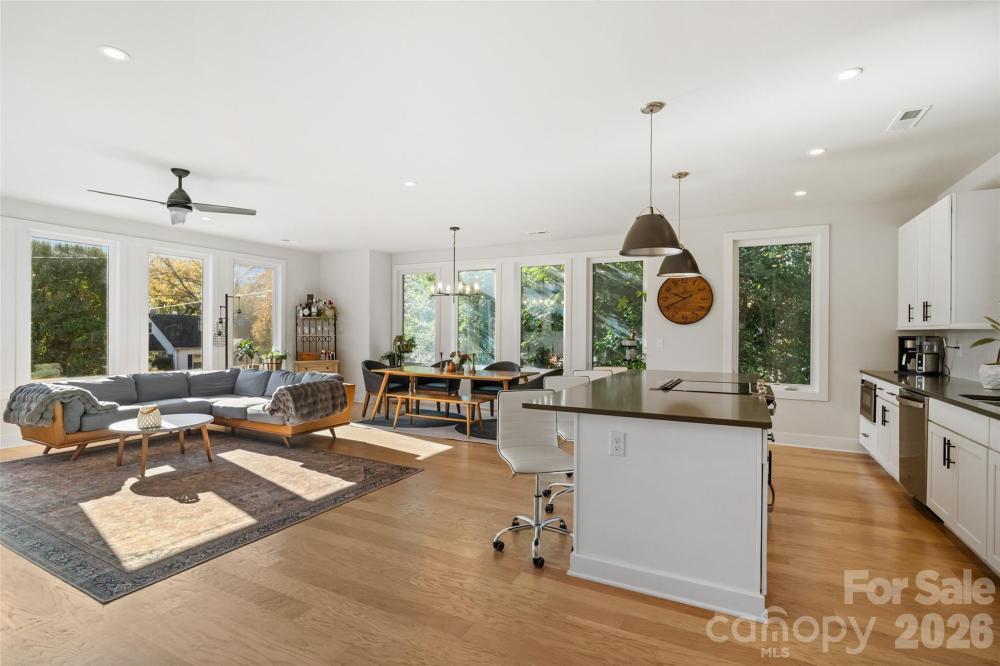 Rare end-unit opportunity to join this charming four-home community, just minutes from Uptown Charlotte. Enjoy close proximity to Plaza Midwood, Central Avenue, and all the shops, restaurants, and vibrant lifestyle the area has to offer! This premium end unit features expansive windows that flood the open, highly functional floor plan with natural light — perfect for everyday living and effortless entertaining. The well-appointed kitchen boasts custom cabinetry, a large center island, quartz countertops, a stylish tile backsplash, and high-end stainless steel appliances. Wide-plank, site-finished hardwood floors flow throughout the ground level, main level, staircase, and upstairs hallway, adding warmth and continuity to the home.The primary suite features a spacious walk-in closet and a luxurious bathroom with a walk-in shower and dual vanities. Enjoy the outdoors from the private rear deck on the main level or the covered patio on the ground floor. Fresh pine needles and fence make this perfect everyone! Parking is a breeze with a two-car garage and an additional driveway for guests. Walk to Eastway Crossing whick features Portofinos, Barts Mart, Dairy Queen, and more! Also there is our very own neighborhood bar at the end of Pinecrest called Franks Beer Shop! Come see for yourself everything this exceptional townhouse has to offer!
