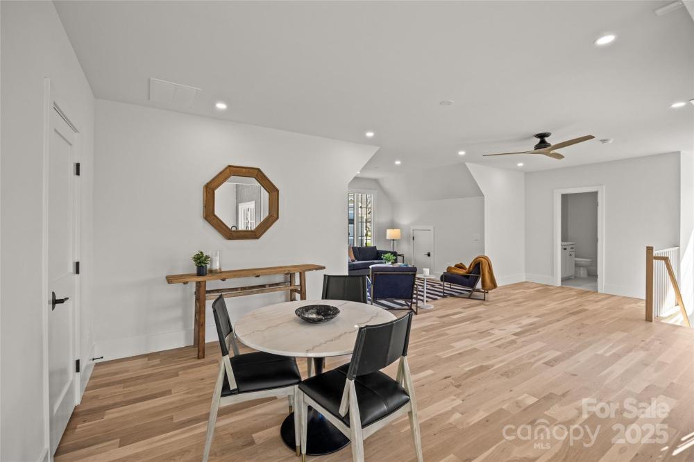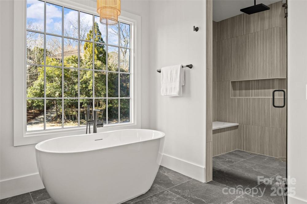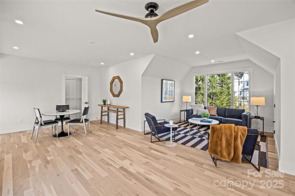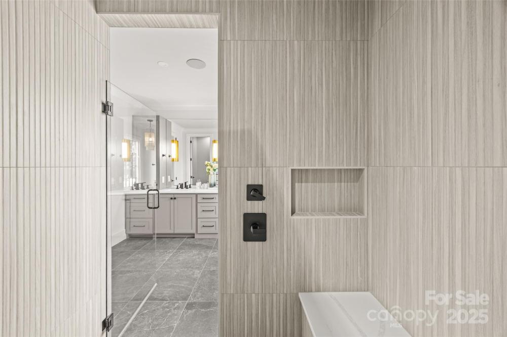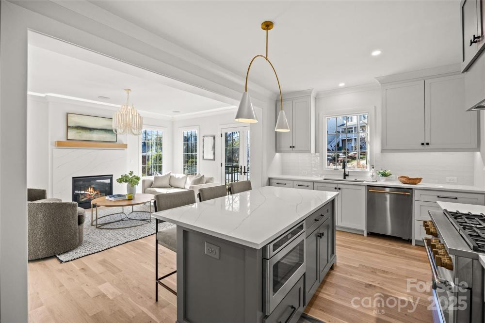 An extraordinary custom designed residence showcasing distinctive style with ample space for both relaxation and entertainment. From the double height chandeliered staircase windows to the carefully considered living spaces, this home offers a true sanctuary in the city. Open living area features soft, elegant design palette, fully vented fireplace, cove-lighted crown moulding, gorgeous lighting and Juliet balcony, anchored by the tasteful chef's kitchen. Outfitted with quartz counters, professional GE Cafe stainless appliances and custom hand-built full wood cabinets. 36” Range with integrated hood, wifi-connect built-in wide refrigerator with ice-maker, and island with microwave drawer; mini-pantry. Main level office/formal dining/lounge with lighted pocket doors. The luxurious Primary Suite offers a dramatic sense of space. A serene retreat w/spa-inspired en-suite bath, curbless shower, soaking tub, double vanity, ceiling speakers and private toilet stall. Large walk-in hand-built closet. Every spacious bedroom has a full bath. 3rd level loft suite offers flexible living options from media room, entertainment space, or as a fourth bedroom with full bath. Clever ‘Secret Room’ behind standard closet can also be an extended walk-in closet or storage space. Top floor is where the party happens as you unwind outside on your large hardwood, 3rd level terrace, perfectly suited for sophisticated entertaining with 7 ft serving window via kitchenette, quartz exterior bar top, outdoor TV and A/V connections & fire pit with gas hookup. This brand new duet home boasts a comprehensive list of exceptional luxury amenities, incl elegant multi-paned full wood/aluminum clad windows single-sourced from forest to fabrication in USA, HERO Energy compliant, white oak flooring, 'secret room', mud/drop zone, upgraded A/V package, video doorbell, fully insulated crawl space, stunning 3rd level wood terrace, architectural and metal roof, and large 2-car attached garage. Nestled within a quiet cul-de-sac, you're never more than a few minutes from all that beautiful Plaza-Midwood has to offer. Walk to Central Ave restaurants/venues, or ride your bike to the greenway. Close to the Blue Line, freeways and Uptown