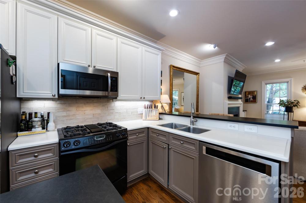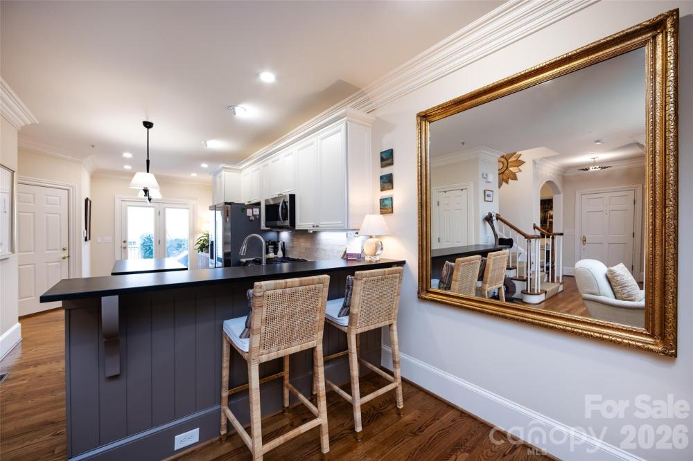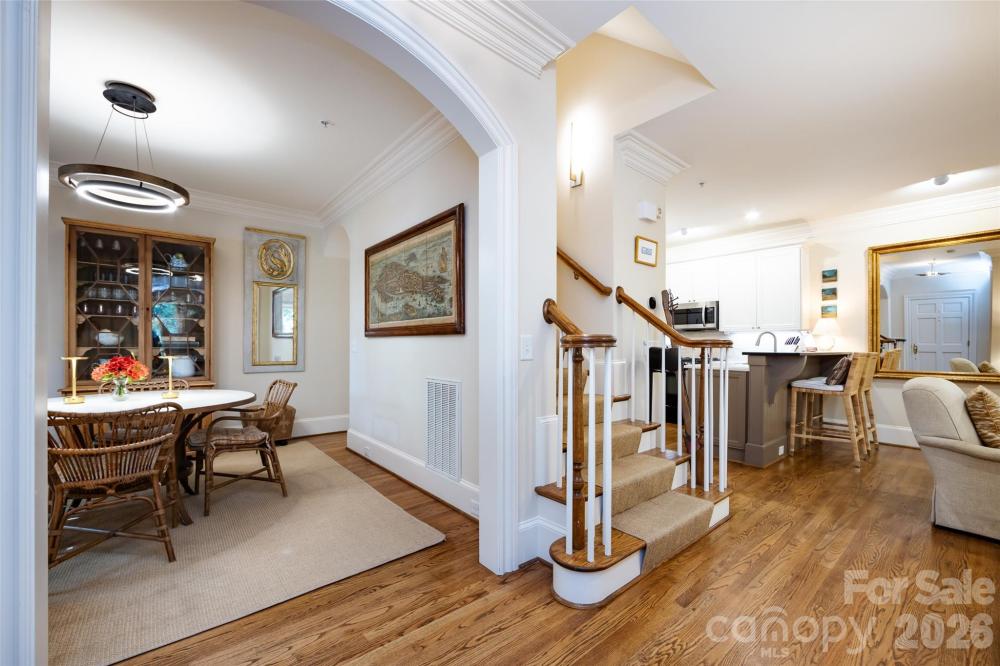 A truly rare find in Myers Park, this beautifully renovated townhome-style condo lives like a single-family home—surrounded by the neighborhood’s iconic tree-lined streets and stunning homes. Just blocks from the Greenway and a short walk to Park Road Shopping Center, and Myers Parks best restaurants and shops on Selwyn. The walkability here is unmatched. Recently updated, the home offers high ceilings, abundant natural light, and a spacious, functional layout. The main level features a formal dining room, a flexible den/office or second living space, and an updated kitchen with a large island, breakfast area, and adjoining living room with gas fireplace. Step outside to a private, enclosed patio—perfect for morning coffee or evening cocktails. Upstairs, the generous primary suite includes a renovated bath and walk-in closet. Two guest bedrooms share a Jack & Jill bath, and there’s an additional bedroom or office ideal for flex space, along with a dedicated laundry room. The finished third floor provides endless possibilities—bonus room, gym, playroom, music space, or additional bedroom—with potential to add another bathroom. Additional highlights include a large front yard maintained by the HOA, a driveway with two additional parking spots out front, spacious two-car garage. The HOA covers lawn maintenance, exterior building maintenance, master insurance policy, and water. Elevator installation has been explored and appears possible, and an invisible pet fence may be allowed with HOA approval. Located on one of Myers Park’s most sought-after streets, this home offers unmatched walkability, charm, and convenience. Don’t miss this rare opportunity—call the listing agent today for a showing.