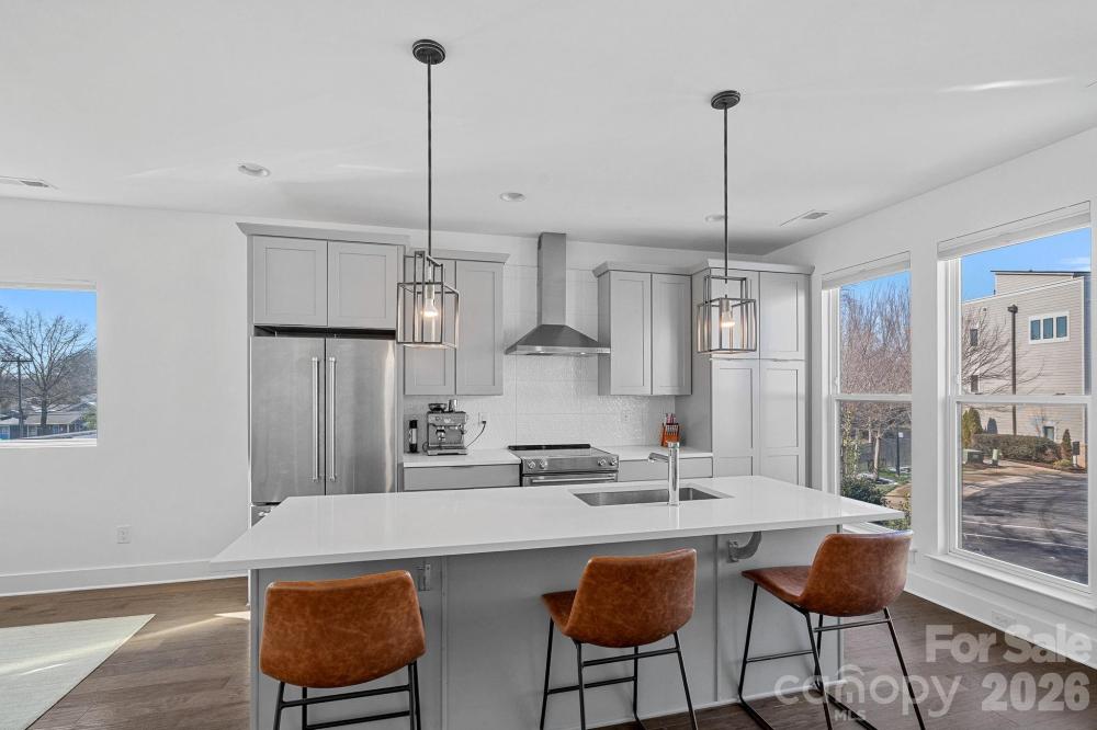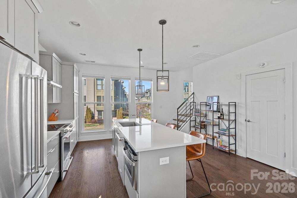 Gorgeous Wesley Heights gem in the coveted Uptown West Terraces!! This stunning end-unit townhome boasts a rooftop terrace with breathtaking skyline views – perfect for your morning coffee, evening cocktails or entertaining family and friends. The entry-level features a versatile bedroom or flex space ideal for a guest suite, home office or home gym, along with a full bath and access to the attached 2-car garage. The upper level (2nd floor) has an open-concept layout which seamlessly flows between the kitchen, dining and living areas. The kitchen offers stainless steel appliances, a center island with seating, beautiful cabinetry, quartz counters and pendent lighting. The primary suite, located on the third floor, enjoys beautiful skyline views and features a nicely sized walk-in closet and a lovely bath with dual sinks, attractive cabinetry, quartz counters and spacious walk-in shower. The second bedroom is comfortably sized and has an en-suite full bath for privacy. Wonderful natural lighting fills the home thanks to its end unit location and additional side windows in the living room and primary bedroom. Enjoy the unbeatable convenience with easy access to Uptown, the greenway trail, breweries and restaurants. A beautiful home and a must see!