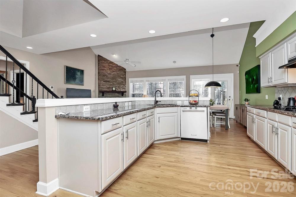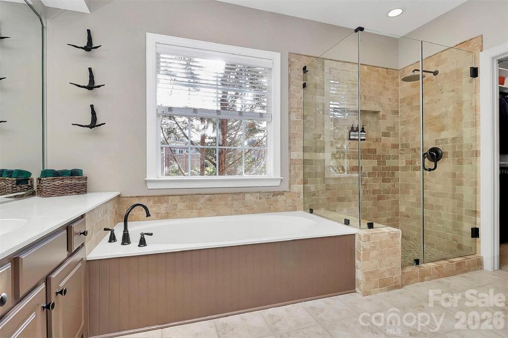Exceptional value for a premium Rogalla home. This upgraded end-unit with serene forest views offers 4,201 square feet of thoughtfully designed living space across three finished levels. The top floor includes an office, two bedrooms, and a full bath. On the main level, you’ll find the kitchen, living and dining areas, laundry, and a private primary suite with access to the screened porch. The fully finished walk-out lower level provides outstanding flexibility with a bedroom, full bath, spacious family room, flex space, and 8.5-foot ceilings—ideal for guests, a home office, or multi-generational living. Plumbing is in place in the basement for a kitchenette or wet bar to be added. Major improvements provide true move-in confidence, including a new roof and HVAC (2022), a full-length deck and screened porch (2024), updated refrigerator and dishwasher (2024), and a complete second-floor renovation (2024). Hardwood floors on the main level and a refreshed kitchen with painted and refaced cabinetry add to the home’s appeal, and for added convenience, the refrigerator, washer, dryer, and infrared sauna will remain. Situated on one of the most desirable lots on Rogalla, this end unit enjoys expansive side green space and a peaceful wooded backdrop, offering exceptional privacy, natural light, and inviting outdoor living. For the 2026 – 2027 school year, this home is zoned for South Charlotte Relief Middle School.