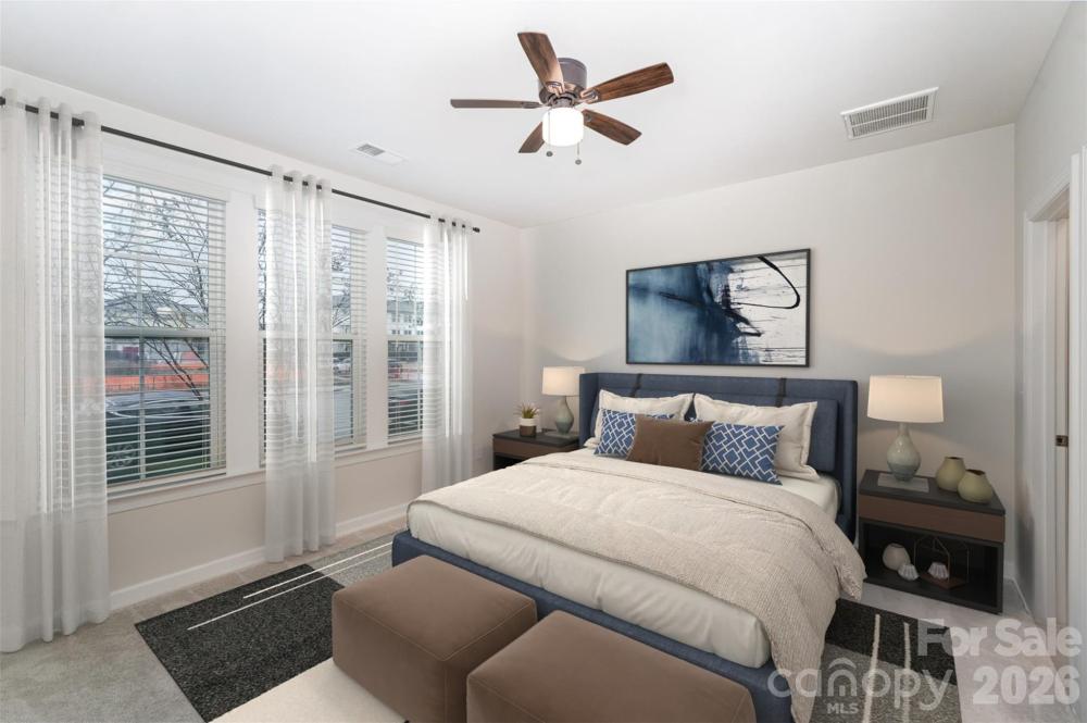 RARE Luxurious all-brick End-Unit Townhome with an oversized 2-car garage in the highly sought-after Rea Farms community. Floor plan offers a plenty of space for everyone along with 4 Bedrooms and 3.5 Baths! The main level includes a versatile bedroom with a full bath, perfect for a home office or guest suite. The second floor boasts a nice kitchen with a large island, quartz countertops, SS appliances, and opening to a dining area and living room. Living Room has access to covered balcony w/ plenty of outdoor space. Primary Bedroom with suite Bathroom having dual sinks, quartz counter and shower. Walk-in closet is a bonus! And two additional bedrooms & 3rd full bath w/comfort for all. Fresh painting, brand new light fixtures in bedrooms and living room. Refrigerator, washer and dryer convey. Minutes to shopping, restaurants, fitness center. Also, easy access to I-485, uptown Charlotte, and the airport.