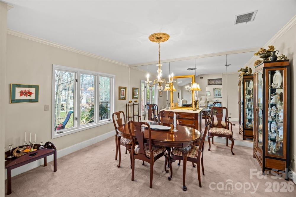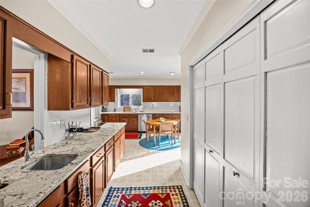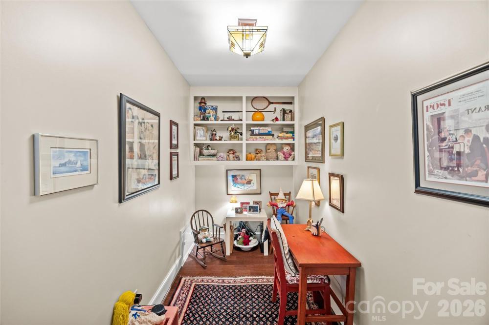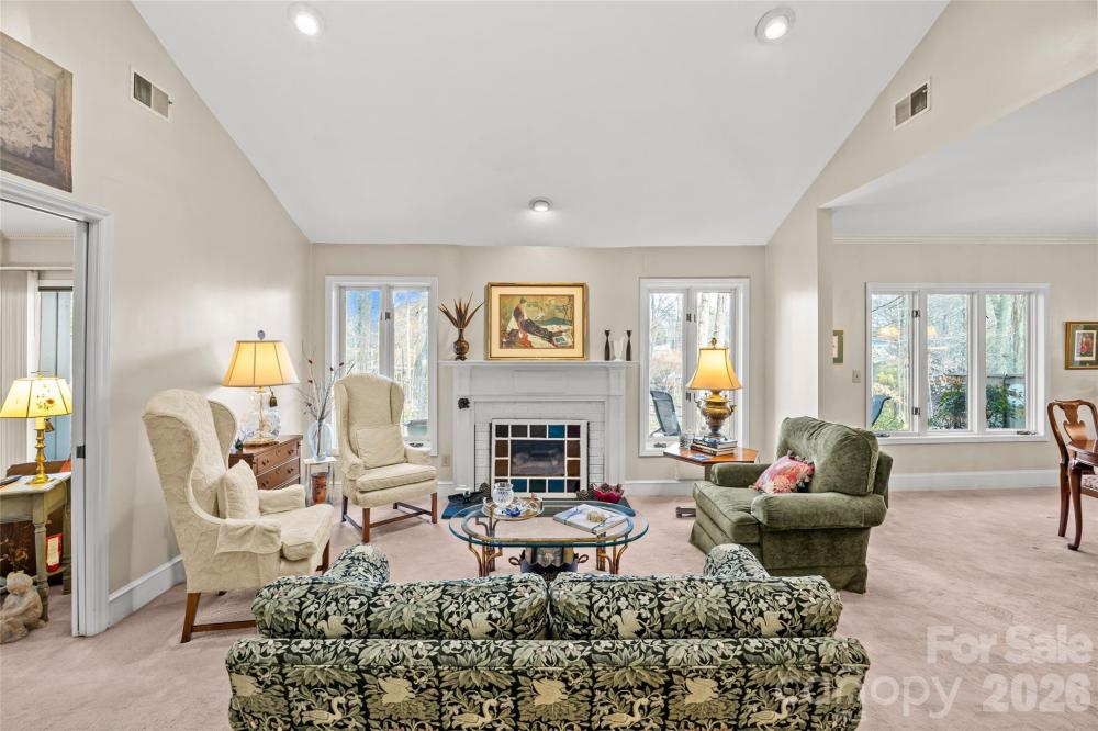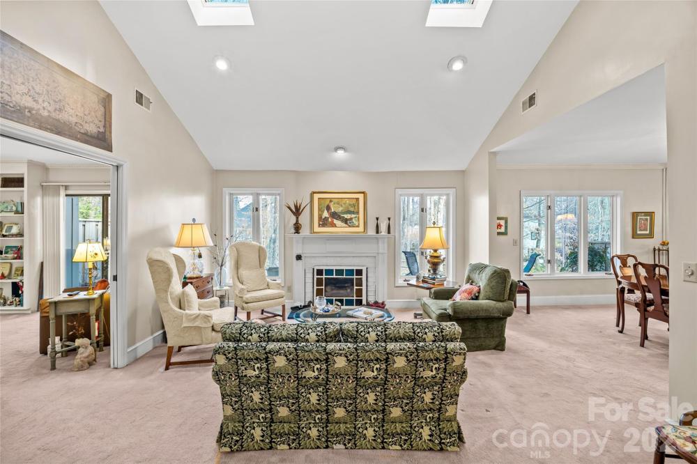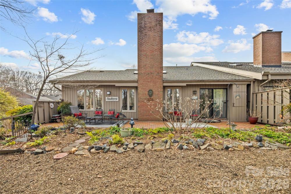 Charming ranch end unit townhome in Carmel South with popular floor plan- 2 BR/2BA plus Den! A gated courtyard features a brick pathway, lined with perennials & flowering trees & shrubs. The rear yard has a brick patio & small decorative pond, offering a peaceful view of wooded area. The foyer leads to the formal LR & DR which are perfect for hosting gatherings, while the cozy den off the LR is ideal for unwinding with a book or watching TV. Kitchen updated within last 10 yrs. with granite countertops & stainless appliances -wall oven, microwave, electric cooktop.The large bedrooms each have their own private bath. The primary suite features a generous walk-in closet. The oversized detached garage has extra storage space above. New HVAC 2023. The neighborhood is nestled on approximately 40 acres, featuring beautifully landscaped green spaces. Carmel South is conveniently located across from Carmel Country Club and convenient to grocery stores and restaurants.