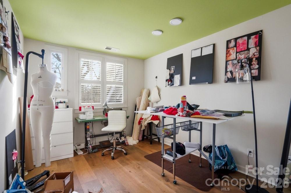 Full brick end unit with primary bedroom on the main level has wood floors in Great Room, two bedrooms plus loft/office with built in shelving. Courtyard patio is fully fenced with a brick wall - perfect for grilling out and entertaining ! Walk to local Southpark amenities !