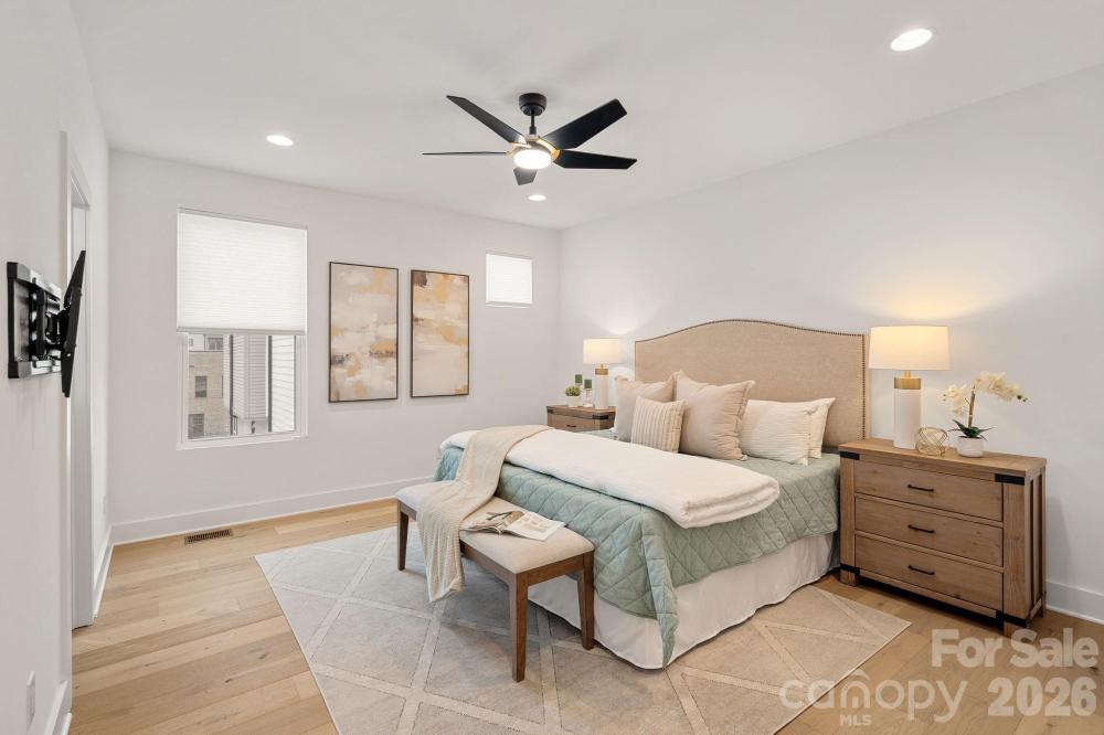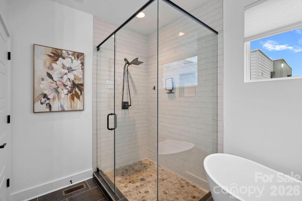 Set in the heart of Wesley Heights and just minutes from Uptown, this modern townhome delivers true city living with space to breathe. Walk to dining, breweries, the greenway, and trolley, then come home to your own private rooftop retreat with more than 800 square feet of outdoor living and skyline views. Inside, the open layout is bright and inviting, built for both everyday living and effortless entertaining. The kitchen anchors the main level with a generous island, stainless steel appliances, and added custom cabinetry and counter space that elevate both style and function. The primary suite feels like a retreat, complete with dual closets and a spa-style bath featuring an oversized shower and soaking tub. A lower-level bedroom with ensuite bath works perfectly for guests, a home office, or private flex space, while an additional bedroom and full bath offer even more versatility. A two-car garage prewired for an EV charger and ample storage add practicality to the design, making this home as functional as it is striking. Rooftop views, walkability, and modern design come together in one of Charlotte’s most dynamic neighborhoods.