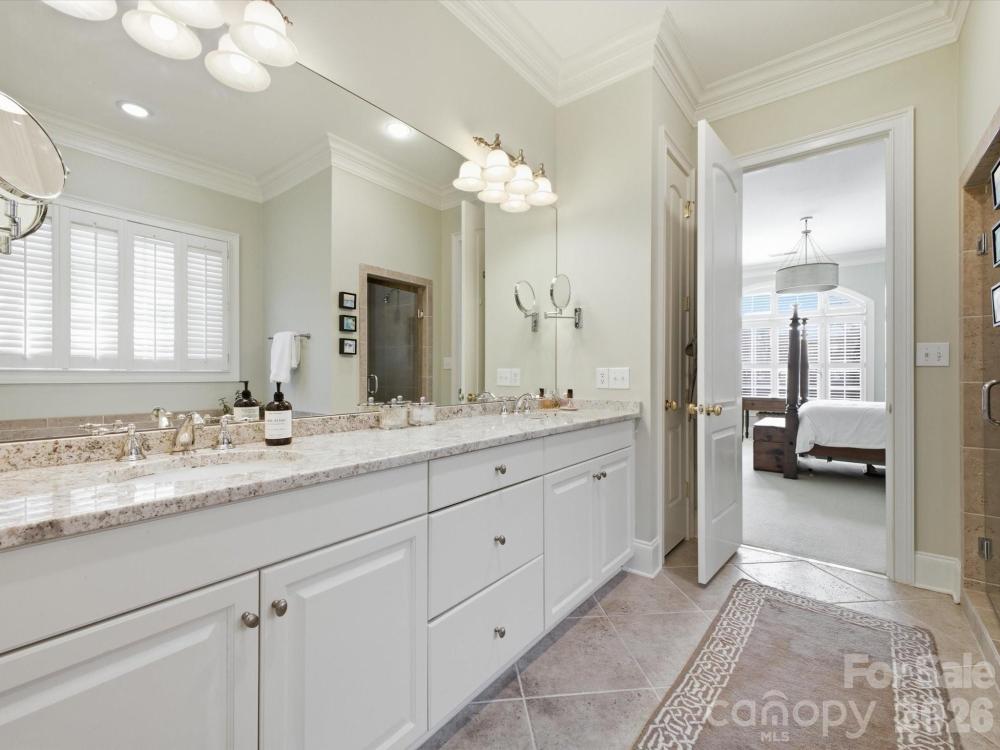 Welcome to Park Phillips! This beautifully maintained all brick townhome offers a rare SouthPark opportunity with a PRIMARY BEDROOM on the MAIN FLOOR. This end unit is close in proximity to Southpark's popular restaurants, grocery stores, and retail while combining low maintenance living, functionality, and location. The downstairs white oak hardwood floors are only three years old. There is a formal dining room and a large sitting area in the breakfast nook. The open-concept design creates a seamless flow between the living and dining areas, and outside is a lovely brick-walled patio designed for privacy and tranquility. Upstairs, you will find additional generously sized bedrooms and a large family room ideal for guests, a home office, watching movies, or playing cards/mahjong. There is a cedar closet, a closet with a built in desk, and two additional walk-in closets that provide ample storage space. In addition, a fitness room awaits you with foam flooring. Enjoy the benefits of end-unit living with extra windows, added privacy, and abundant sunlight throughout. Schedule your showing today! Outdoor grill, patio furniture, security system (not active) all remain. Pool table and exercise equipment is negotiable. *HOA covers roof, exterior, pest tx, private roads, gutters, landscaping.