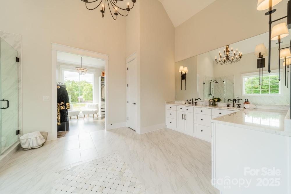 Spectacular custom brick home w/all the bells and whistles! Elegant, curved staircase, oversized DR & gorgeous lighting. Open floor plan with loads of natural light. Gourmet chef's dream kitchen showcases a huge marble island, wine cooler, SS appliances, beautiful white cabinetry and pantry. Beautiful, engineered wood floors. Large office on Main. Massive Primary BR on main w/large reading area leads to impressive en-suite bath showcasing a 15' ceiling, stunning shower, garden tub, marble counters & large walk-in closet. Upstairs includes BR w/private bath, 2 BR's w/shared bath & Bonus Room w/private bath & closet. All with custom closets & marble countertops. This home is impeccable decorated & adds to the grandeur of the limestone gas fireplace & 20" coffered ceiling in GR. Central Vac. Backyard oasis makes entertaining a breeze w/a large, covered porch sanctuary, built-in gas grill & a designer gunite pool for all to enjoy. 3-car garage. Irrigation on front/sides. Min from 8-485. 3 minutes from local park.