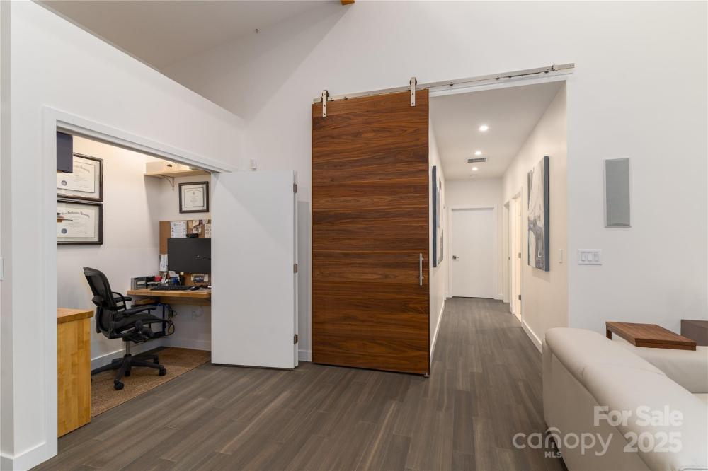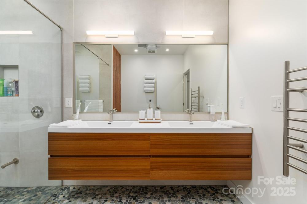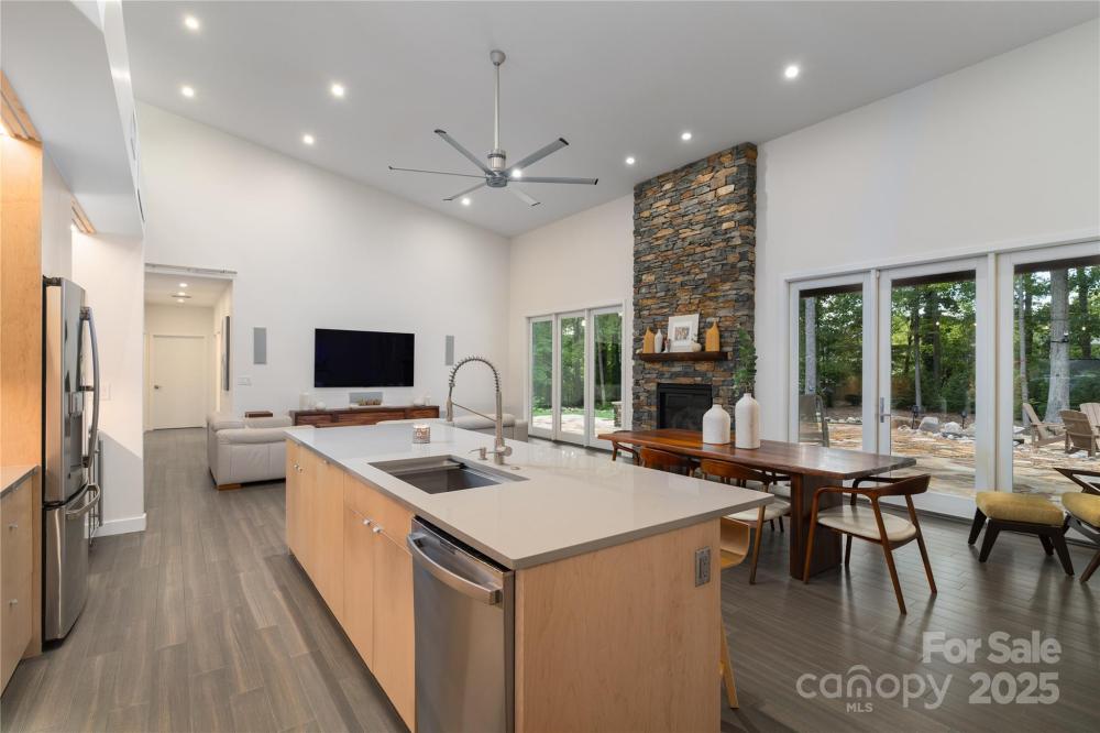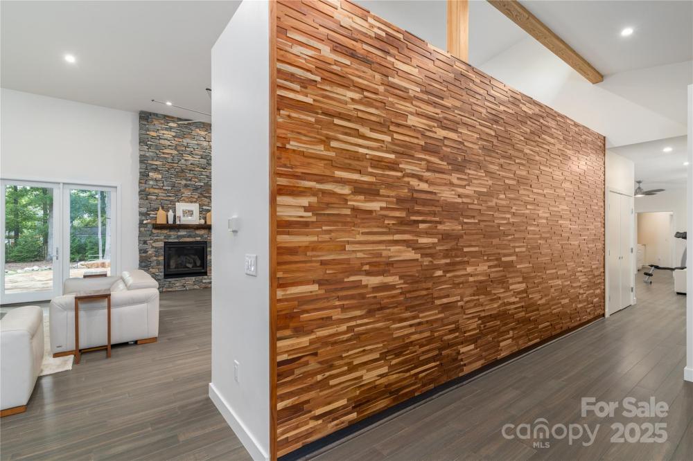 This property boasts impressive features, including three bedrooms and two bathrooms, situated on 1.5 acres of land. Built in 2020, the residence showcases SIP construction with a concrete base, utilizing fiber-reinforced concrete to eliminate cracks. Additional highlights include a tin roof with a 40-year warranty, LED high hats throughout, engineered bamboo flooring, and handicapped accessibility. An automated irrigation system further enhances the property's appeal. Externally, the house is complemented by rock walls, a comprehensive security camera system providing 360-degree coverage, and a 22 KVA generator. The backyard features a covered patio with stone flooring, ceiling fans, and lighting, alongside a fire pit surrounded by flagstones and river rock pebbles, and landscaped with diverse plants and boulders. The landscape includes fescue grass, junipers, Thuja Green Giant trees, mulch, river rocks, and boulders, with mature trees adding to the ambiance. The cemented driveway is equipped with LED lights and drainage systems lined with rocks. Upon entering, residents and guests are greeted by a black walnut solid wood pivot door, flagstone and river rock pebble flooring, and stoned pillars. Internally, the house boasts LED high hats, bamboo engineered flooring, an open floor plan with high ceilings, and premium finishes including large wooden cabinets, quartz countertops, and a gas fireplace. The master suite features its own AC system, custom-designed closets, and remote control window shades, while the master bath includes a walk-in shower and heated floor. Guest bedrooms offer custom-made decorations and window treatments. Additional amenities include a family room, guest bathroom, laundry room, and a spacious 3-car garage with epoxy flooring and car lift connections.