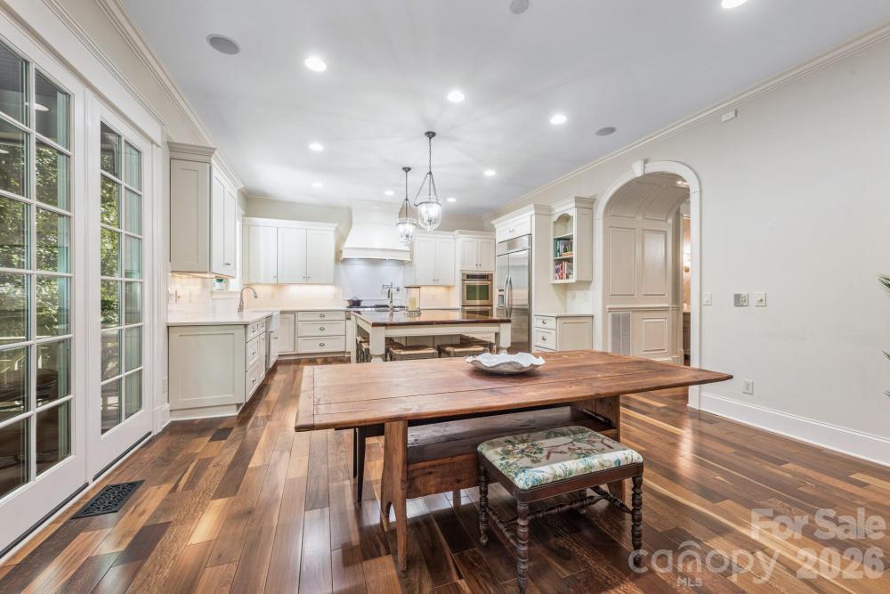 Nestled within one of Charlotte’s premier luxury ZIP codes—with unrivaled proximity to SouthPark Mall, renowned restaurants, lifestyle conveniences, and exceptional private schools—this residence blends classic architectural grace with modern sophistication. This well apppointed home is priced below the appraised value. Appraisal available upon request. A grand Southern foyer welcomes you into an atmosphere of refinement, flowing effortlessly into a dramatic coffered-ceiling great room, an elegant dining salon, and a chef’s kitchen appointed with bespoke cabinetry and high-end appliances. Seamless indoor-outdoor living is enjoyed through a screened porch and an expansive open terrace overlooking the grounds. The main-level primary suite offers a sanctuary of serenity, showcasing a coffered ceiling and a spa-inspired bath. Also on the main floor: an impressive French-doored executive office, a secondary private office, a well-appointed utility wing with drop zone, and exceptional circulation designed for ease of living. The upper level hosts three bedrooms, two full baths, and a flexible bonus room that may serve as a fourth bedroom or lounge. A private third-floor suite offers the ideal retreat for guests, in-laws, or an au pair, creating a truly multi-generational footprint. The walkout lower level elevates entertaining with a custom wine cellar, full bar, billiards area, fireside living room, guest suite, fitness studio, theater room, office, and workshop—each space thoughtfully designed for connection, comfort, and leisure. Discover the essence of timeless Southern luxury in this distinguished 7-bedroom, 5 full and 2 half-bath estate, offering more than 8,000 square feet of curated living across three levels and a private walkout lower level. Additional features include a three-car side-entry garage, walk-up workshop/storage, exceptional storage throughout, and gated community access for enhanced privacy and security. Steeped in craftsmanship, enriched with modern amenities, and positioned in one of Charlotte’s most coveted luxury enclaves—this estate embodies the enduring elegance of Southern living at its finest.