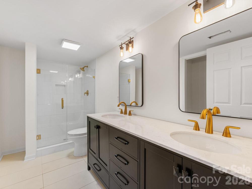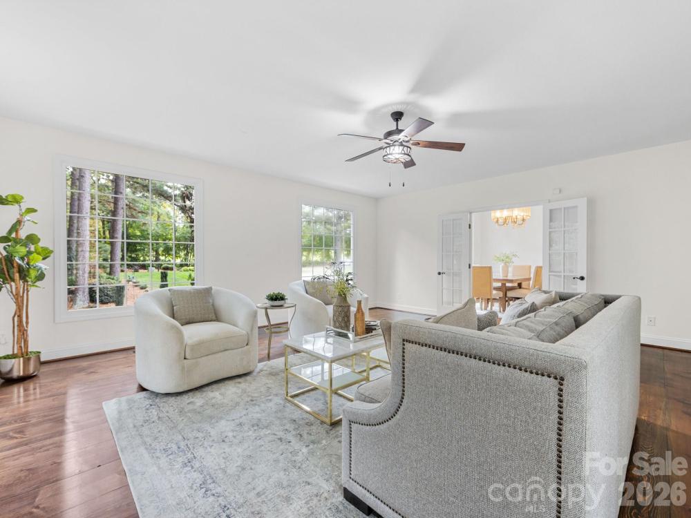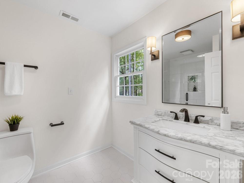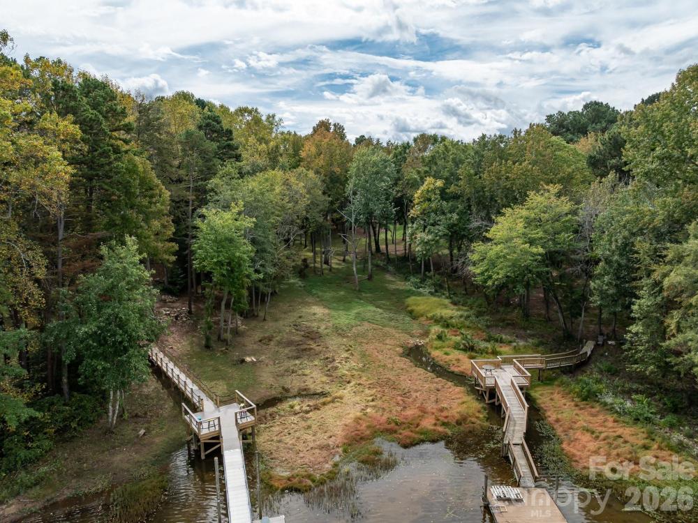 Experience lakeview living at its best in this beautifully maintained home at 5619 Mountain Point Ln sitting on 1.79 ac. Enjoy peaceful mornings on the covered front porch with a beadboard ceiling, or relax on the expansive 325 sq. ft. back deck overlooking the serene lake. Step inside the two-story foyer to find wood flooring throughout most of the home. The main level offers a private office with glass French doors, built-in desk, and bookcase. The spacious formal living room connects to the dining area through French doors—ideal for entertaining or flexible use. The open family room features a cozy wood-burning fireplace & flows seamlessly into the remodeled kitchen. The kitchen (remodeled in 2020) showcases granite countertops, GE Profile double convection ovens(with Wi-Fi app control, air fryer and scan-to-cook features), a Sub-Zero refrigerator, trash compactor, and a brand-new dishwasher. Upstairs, the vaulted primary suite includes a sitting area with lake view & three walk-in closets, including a custom California Closet measuring 14.5’ x 14’. The remodeled primary bath offers a glass-enclosed tile shower, soaking tub, dual vanities, & a private water closet. The oversized second bedroom (approx. 21’ x 15’) is filled with natural light, & the guest bath has been beautifully updated with tile finishes. The finished basement includes a recreation room with tile flooring, a pre-wired media room, & a kitchenette (missing only a stove to function as a full second kitchen). The remodeled basement bath includes a laundry closet, plus two flexible rooms with closets,doors, & windows that could be used as bedrooms, office, or gym space. Additional features include fresh interior and exterior paint, a whole-house water filtration system, irrigation system, dual driveways (concrete with brick paver parking plus a secondary gravel drive leading to a concrete pad), & a large storage area under the deck that could accommodate additional vehicle parking. Other updates include: roof (2018), A/C units (2018 & 2020), commercial-grade water heater (2020), and septic pump (2020). While Duke Energy owns a few feet at the rear of the lot for a buffer—preventing a private dock—residents enjoy access to the community boat ramp just down the street. Home is convenient to shopping, dining, etc. Downtown Charlotte & Charlotte Douglas Airport are about 12 miles away. Come see the thoughtful upgrades, generous spaces, and calming lake views that make this home truly special.