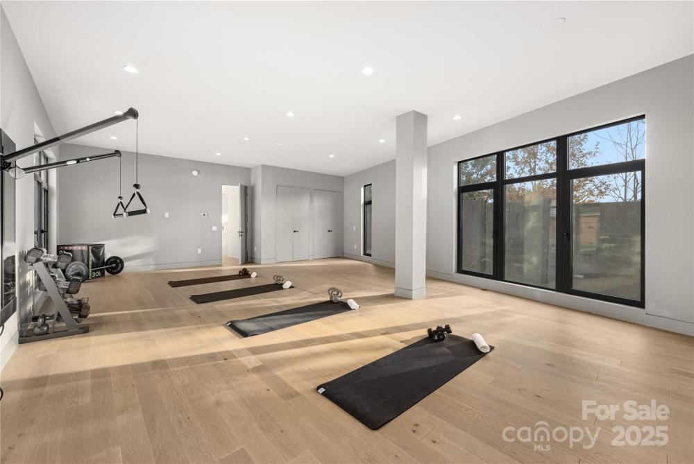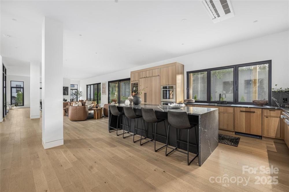 Completed in 2025, this breathtaking 8,010 sq. ft. luxury residence features cutting-edge design, curated finishes, and an amenity-rich floor plan tailored for upscale living in a prime Charlotte location. Set on a 0.3-acre lot near Plaza Midwood, Elizabeth, and Uptown, this six-bedroom home offers expansive living spaces and high-end construction details throughout. The open-concept main level features a striking two-story foyer, a chef’s kitchen with premium Miele appliances, a Sub-Zero wine fridge, Cabico custom cabinetry, and a dramatic granite waterfall island, plus a full scullery for additional prep and storage. The adjoining living and dining areas flow through oversized sliding glass doors to the outdoor patio for truly seamless indoor-outdoor living. A glass-enclosed flex room is ideal for a tasting room or office, while the main level also includes an ensuite guest bedroom and a spacious gym/recreation room. The upper-level hosts three additional guest bedrooms with ensuite bathrooms, a lounge with nano-sliding doors, access to a large patio with skyline views, and a powder room. The primary suite boasts two private balconies, dual custom closets, and a spa-inspired bath with a soaking tub inside the oversized shower suite. The impressive lower level offers a full guest apartment with a bedroom, living room, full bathroom, washer/dryer connection, and mini kitchen. The dedicated theater room is expertly engineered for a true cinematic experience, featuring Dolby Atmos®–ready acoustic design, pre-wiring for full surround sound, specialized screen-optimized wall finishes, and ample space for luxurious seating and immersive entertainment. Additional lower-level spaces include a lounge/bar space, powder room, and mudroom with storage. With triple-pane windows, superior wall foundation, concrete exterior covering, multi-zone climate control, and premium energy-efficient systems, this home delivers luxury, performance, and lifestyle at an unmatched level.