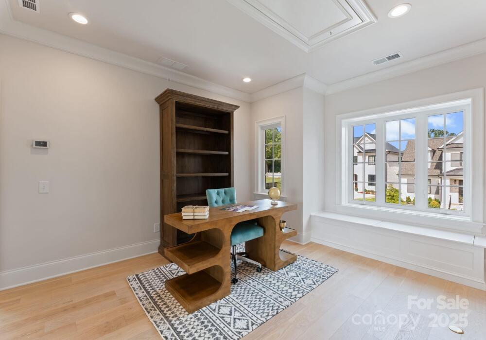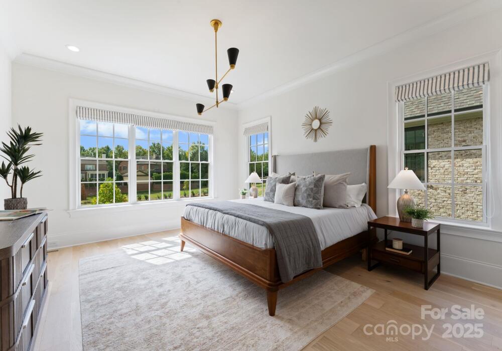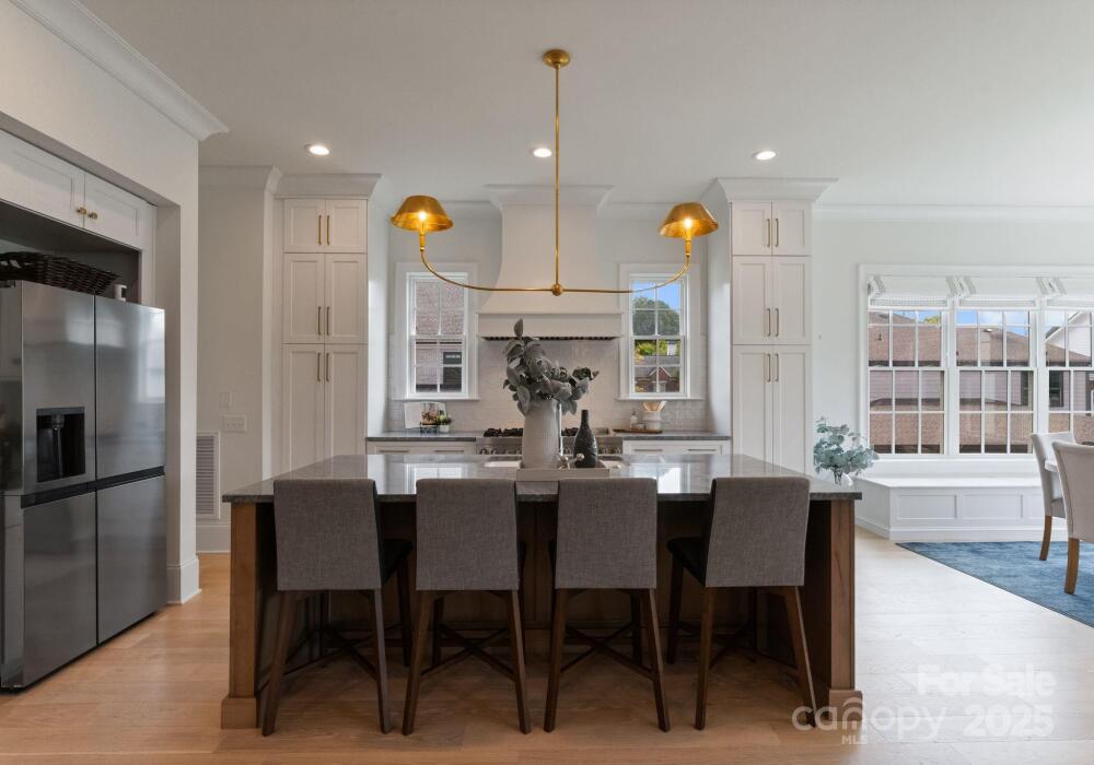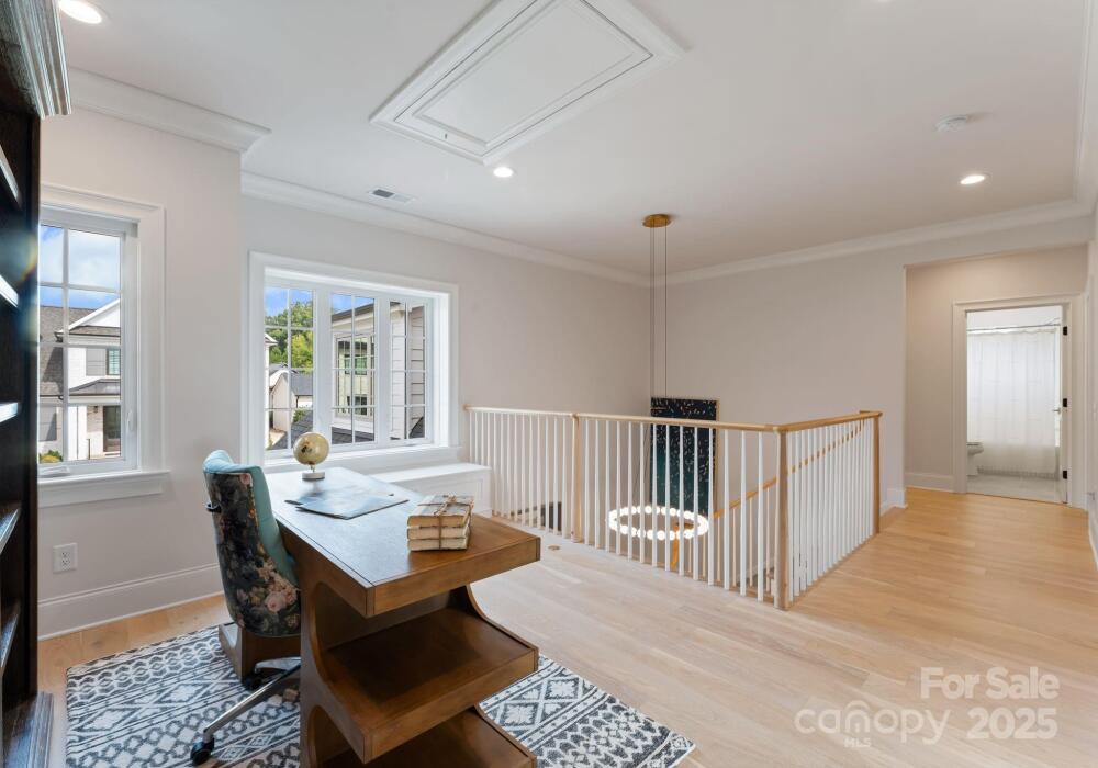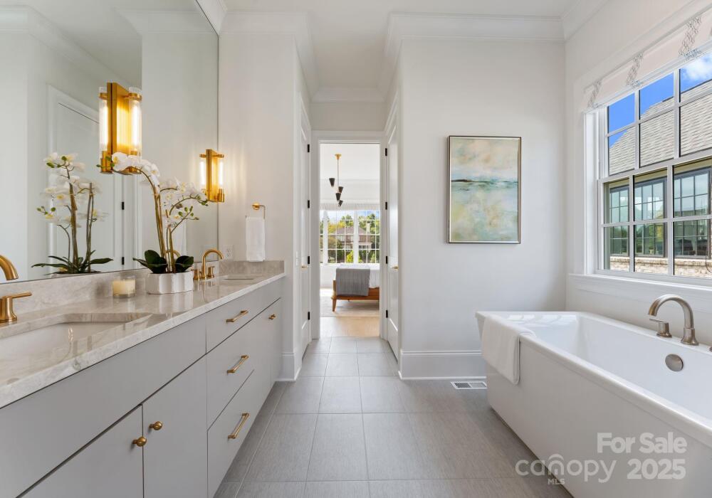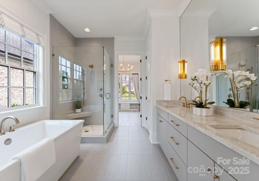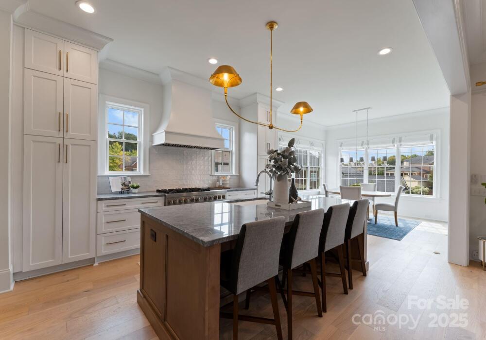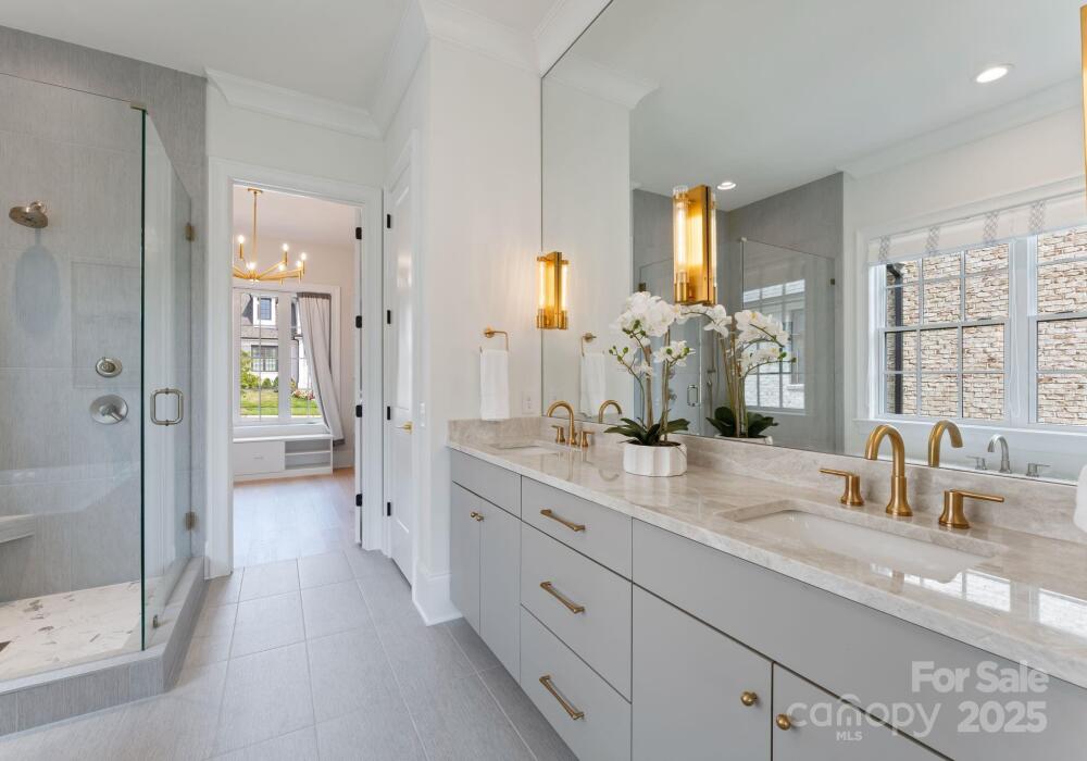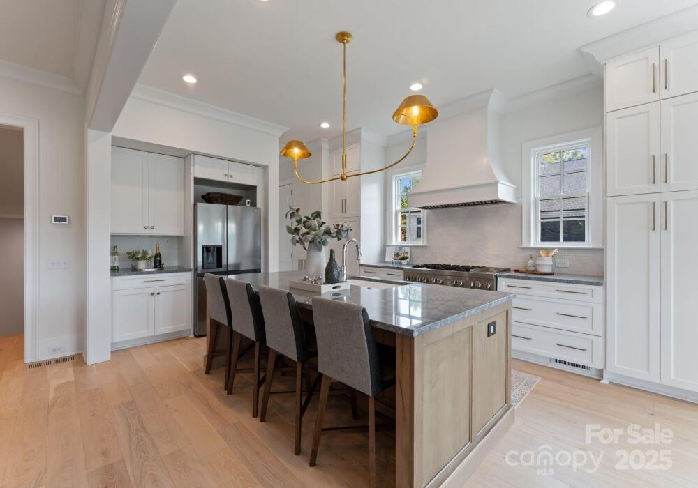 Step into timeless sophistication in this like-new, custom-built Simonini home within the exclusive, gated Heydon Hall community of Quail Hollow—just minutes from the prestigious Quail Hollow Club. This three-story residence blends transitional elegance with modern luxury, designed and built with enduring quality and style in mind. From the moment you enter, you’ll feel the light and spacious flow of this beautifully crafted open floor plan. Every detail reflects refined living—from the designer lighting, marble accents, and upgraded white oak flooring to the custom built-ins and luxury finishes throughout. The main level impresses with a large gourmet kitchen, scullery, drop zone, and a gorgeous primary suite. An upper-level terrace extends the living area, perfect for relaxing or entertaining. The fully finished lower level offers incredible versatility, featuring a spacious guest suite with a full bath, a workout or flex room, abundant storage, and walkout access to a private paved patio. The upper level provides a grand bonus space—perfect for a media room, office, or playroom—alongside three additional bedrooms and a loft area. Other luxurious details include a stunning copper roof and an epoxy-finished garage floor. Meticulously maintained by its original owner, this exceptional home embodies turnkey luxury living in one of South Charlotte’s most sought-after neighborhoods.