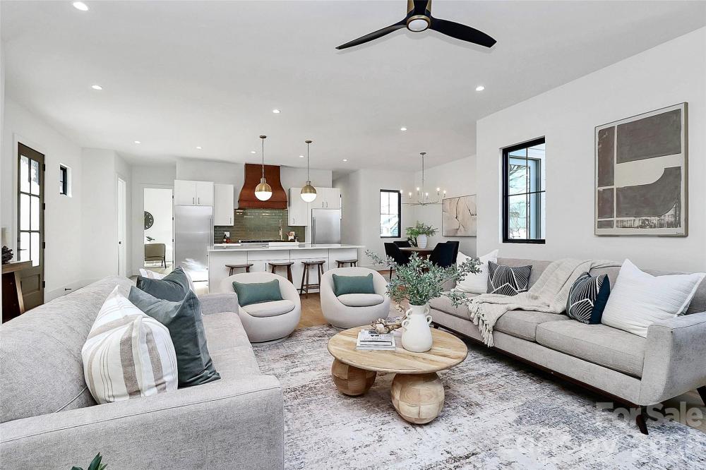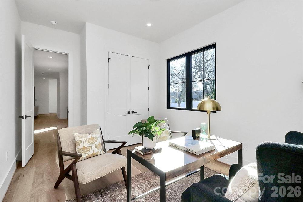 Exceptional two-story home on a prime corner lot featuring a thoughtfully designed floor plan and high-end finishes throughout. Chef’s kitchen showcases a 48-inch dual-fuel range, separate column refrigerator and freezer, quartz countertops, oversized 9-foot island, bar area with wine refrigerator and beverage cooler, and a pantry with ample cabinetry plus prep sink. Open family room leads to a screened porch with privacy screening and fireplace, perfect for year-round enjoyment. Low-maintenance fenced yard adds outdoor privacy. Main level includes laundry with drop zone, a large home office with closet, and a luxurious primary suite with dual sinks, two showerheads, freestanding soaking tub, and an incredible oversized walk-in closet with island and drawer storage. Upstairs offers a second family room/loft, bonus or workout room, and three additional large bedrooms, each with its own en-suite bath. Detached oversized garage with epoxy flooring completes this beautifully appointed home. This home is move in ready!