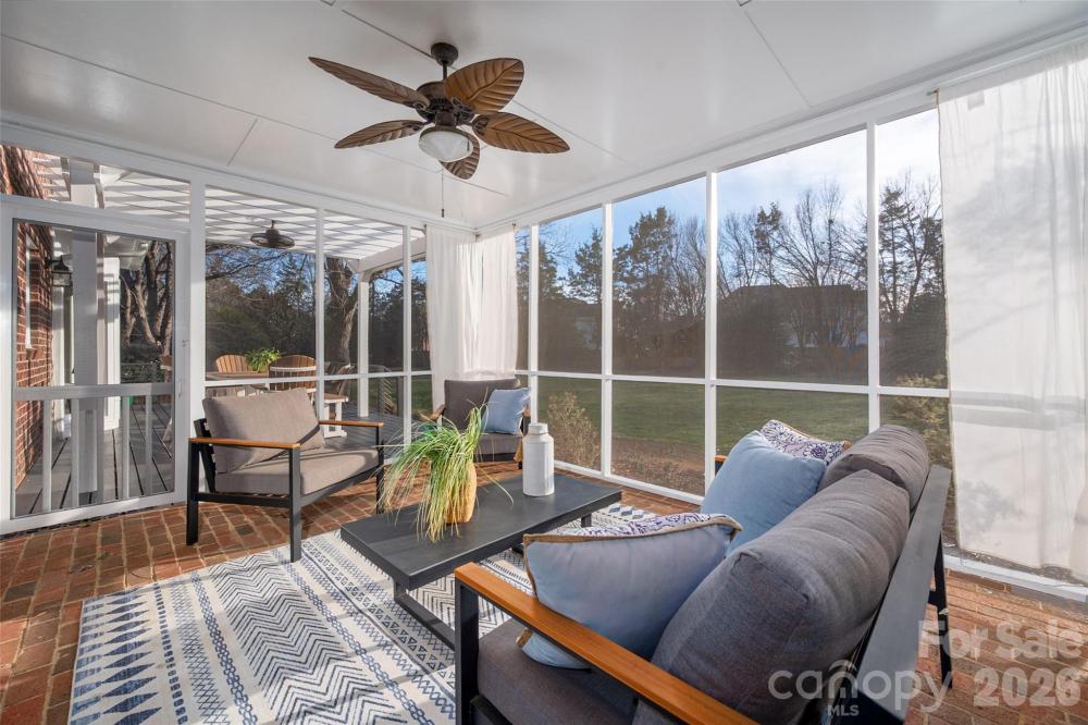 Highly sought after Providence Country Club. Traditional 6BR, 4BA, 2 1/2 story, 4010 sq ft, full brick home located on a quiet cul-de-sac with a flat, tree lined .80 acre lot with fully fenced private rear yard. No Sign. Enter this beautiful home from the brick front stoop through the double Clark Hall steel and glass doors into a light foyer. Elegant dining room on the left and living room/office/flex room on the right. Through the foyer hallway you will enter a nice sized den with beautiful moldings and built-in's, a brick surround masonry fireplace w/gas logs and nice views of the rear yard through the Clark Hall steel and glass wall of windows and double doors to the sunny screened porch with brick floor. Off the screened porch is a huge deck with pergola. From the den you will find the kitchen just off the hallway. The lovely gourmet kitchen has white cabinetry up to the ceiling, marble countertops, beautiful subway tile backsplash, gas cooktop, double oven, custom built-in bar/display area with a microwave drawer, kitchen counter seating and a breakfast area flanked by a wall of floor to ceiling windows. The pantry and laundry room and rear staircase are off this area plus a door to the rear deck overlooking the massive rear, private, flat yard ideal for all sports. Full bath on the main plus 2 storage closets. Newly refinished hardwood flooring on the main level. The second floor features all new carpet, a good sized primary bedroom with 2 walk in closets and a glamorous updated bath with marble dual sink vanity. glass and tile enclosed shower and separate soaking tub. Plus 3 additional bedrooms which have nice sized closets ( one has a walk-in) and share a full bath with tile flooring, quartz dual sink vanity and tub/shower. Off the 2nd floor hall is a very large, sunny bonus room with parquet wood flooring, a closet, 5 attic storage areas and 2 quaint student desk areas. The third level features new carpet & 2 large bedrooms with lots of sunlight and several walk in attic spaces plus a full bath. This home features a whole house central vac, whole house water filtration system, updated attic fan, whole house intercom, updated windows, updated dual zone HVAC, 9 yr old roof, security system. Exterior trim just painted. Zoned for great schools. Neighborhood amenities require membership to Providence Country Club. Close to many great restaurant and shops including Waverly Center. Easy access to I-485 and the airport. Fireplace screen does not convey. Bonus room desk does convey if wanted. Agent is Owner.