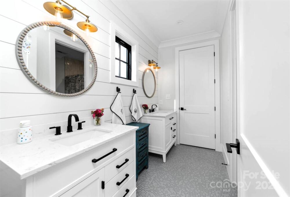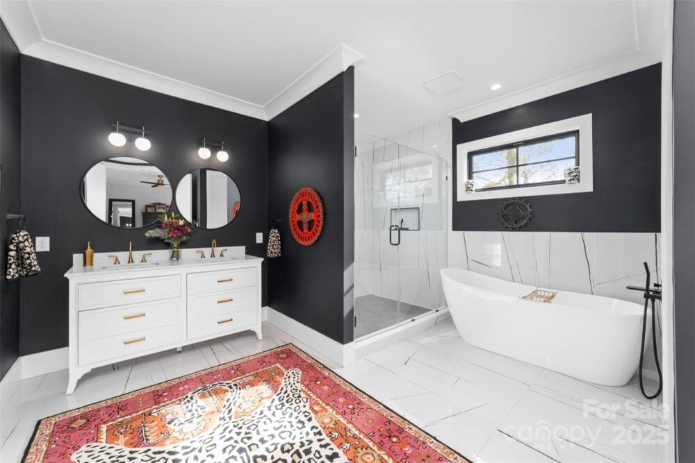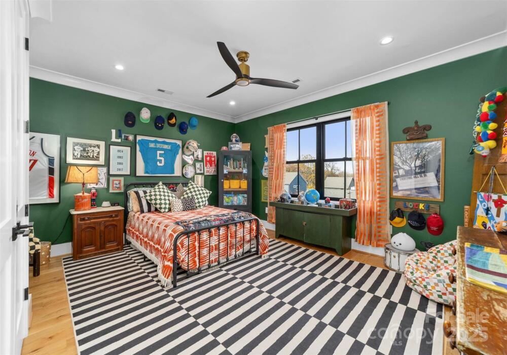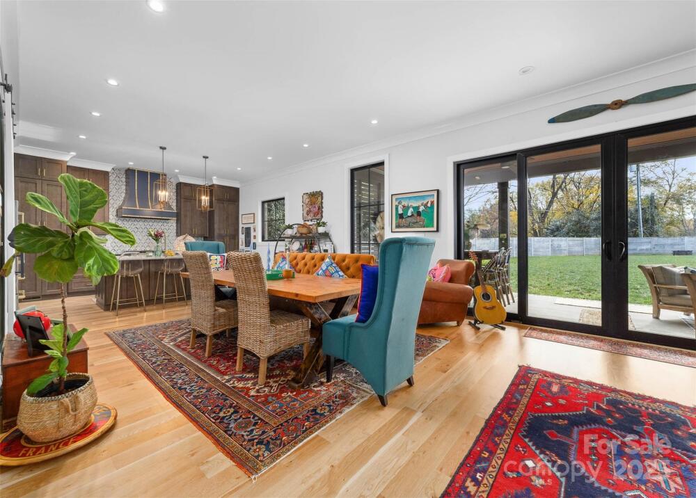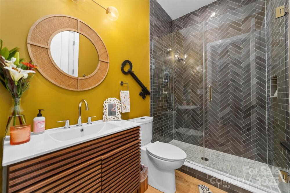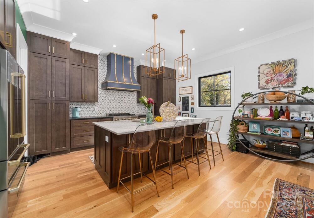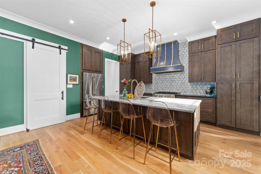 Custom built home by Carolina Serenity Homes that blends upscale design with modern comfort. You will be greeted with a large covered front porch at this stunning 5 bedroom, 4 bath home. Features include an open concept layout flooded with natural light. The main level offers a wet bar, gourmet kitchen, walk in pantry/prep area, dining area, family room, flex space/office, mud room, full bathroom and a bedroom/study. A chef's dream with this gourmet kitchen that features a walk in pantry/prep area, custom hood, 36 inch duel fuel range, oversized kitchen island with quartz countertops and premium stainless steel appliances. Located off the den is a private flex space that can be utilized as an office or study area. The bedroom on the main level has an ensuite bathroom. This bedroom is versatile and can also be used as an office or playroom. Don't miss the hidden play area located in the closet underneath the stairs! Upstairs you will find 4 additional bedrooms with custom designed closets. Retreat to the luxurious primary bedroom which features a large ensuite bathroom and closet/dressing room. The spa inspired primary bathroom has a large soaking tub, oversized shower, dual vanities and an adjoining closet/dressing room. In the closet/dressing room you will find custom built shelves and room for a vanity. This thoughtfully designed home has the laundry room adjoining to the primary closet/dressing room. Two additional bedrooms upstairs share a bathroom with a separate water closet and tub. An additional bedroom upstairs can be utilized as a bonus room as well. Outside you can catch glimpses of the city skyline from the private fenced backyard or covered back porch. Quality craftsmanship shows throughout the home with hardwood floors, custom tile and cedar accents. There is spacious room for entertaining in this home and ample parking for guests as the driveway can accommodate several cars. This home delivers high end living in Villa Heights, one of Charlotte's most vibrant neighborhoods. Close to Optimist Hall, NoDa, Cordelia Park, Uptown and the light rail. No HOA or restrictions for short term rental