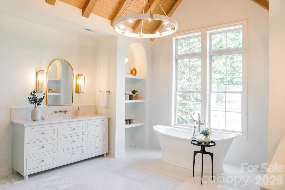 Stunning 5-bedroom, 5.5-bath home located in Providence Park, offering true luxury with a lifestyle built around convenience, connection, and thoughtful design. Crafted for both everyday living and effortless entertaining, this home delivers exceptional flexibility and elevated finishes throughout. The main level features two private rooms — a true guest suite with private en-suite bath and a separate room dedicated for wellness & lifestyle customization w/ expansive windows providing ample natural light and tucked away just enough if privacy is needed. A bright two-story foyer with custom molding opens to an expansive living area with a statement fireplace cast stone fireplace and seamless flow into the dining space and kitchen designed to inspire and entertain. Tucked away just enough to hide the dishes but seen for it's character is the scullery which includes an ice maker, beverage refrigerator, 2nd Dishwasher & prep sink, creating an ideal setup for hosting and organization. A custom drop zone with built-in desk serves as a functional family command center just off the oversized two-car garage. Upstairs, the luxurious primary suite showcases a tray ceiling with exposed white oak beams, oversized walk-in closet w/ island, and a spa-inspired bath with an expansive vaulted ceiling detail, custom arch niches around the soaking tub and a huge walk in shower. The upper level is completed with 3 secondary bedrooms, a bonus room with dry bar & included Bev fridge w/ a dedicated media room setup for mood, ambiance, in-ceiling surround sound,& maximizing entertainment. Outdoor living has been curated for both outdoor area for running, playing & playground equipment & entertainment with outdoor kitchen, spa & salt water pool.
