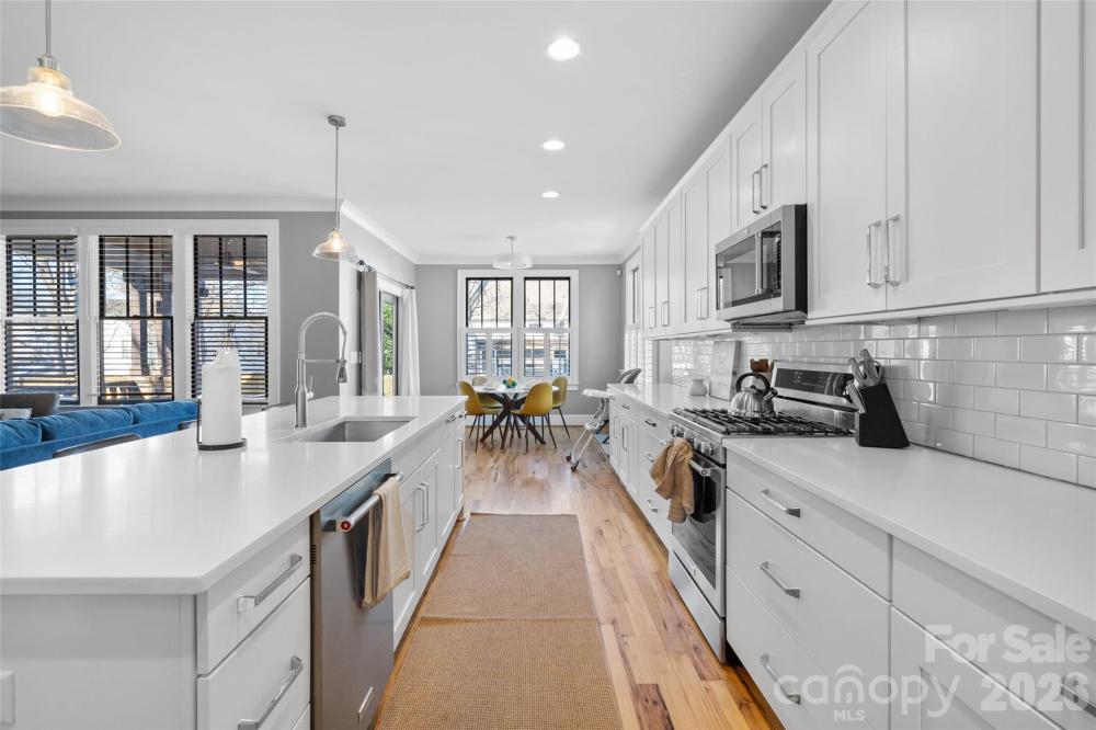 The most effortlessly cool home you’ll see on your search. Tucked at the end of a quiet, no-through street, this Belmont retreat offers rare privacy without sacrificing walkability—perfectly positioned between the creative energy of NoDa and the buzz of Plaza Midwood. Inside, a versatile floorplan with hardwoods throughout and multiple flex spaces creates simple, modern flow. The open kitchen anchors daily life with a massive quartz island, gas range, and generous space for gathering. Upstairs, the primary suite opens to a private balcony, perfect for morning coffee with city views. Outside is pure staycation: the covered porch extends living space, and the 10x14 heated saltwater pool converts to a spa at the touch of a button—plus a greenhouse-turned-outdoor bar adds a fun, unexpected twist. The flat, fully fenced front and back yards make it easy for kids and pets to roam safely. This home truly delivers location, thoughtful design, and personality. Surrounded by local restaurants, corner shops, and easy access to the Light Rail, Optimist Hall, Uptown dining and nightlife—it's Belmont living at its best.